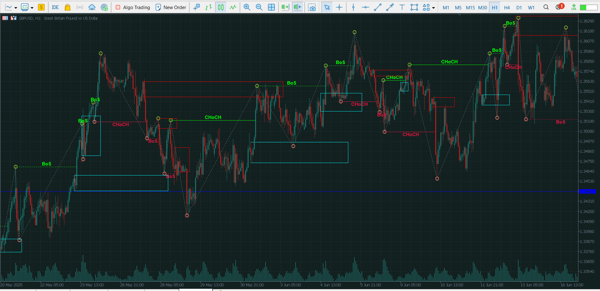 - ✅ Break of Structure (BoS) - Price breaks previous structure in trend direction