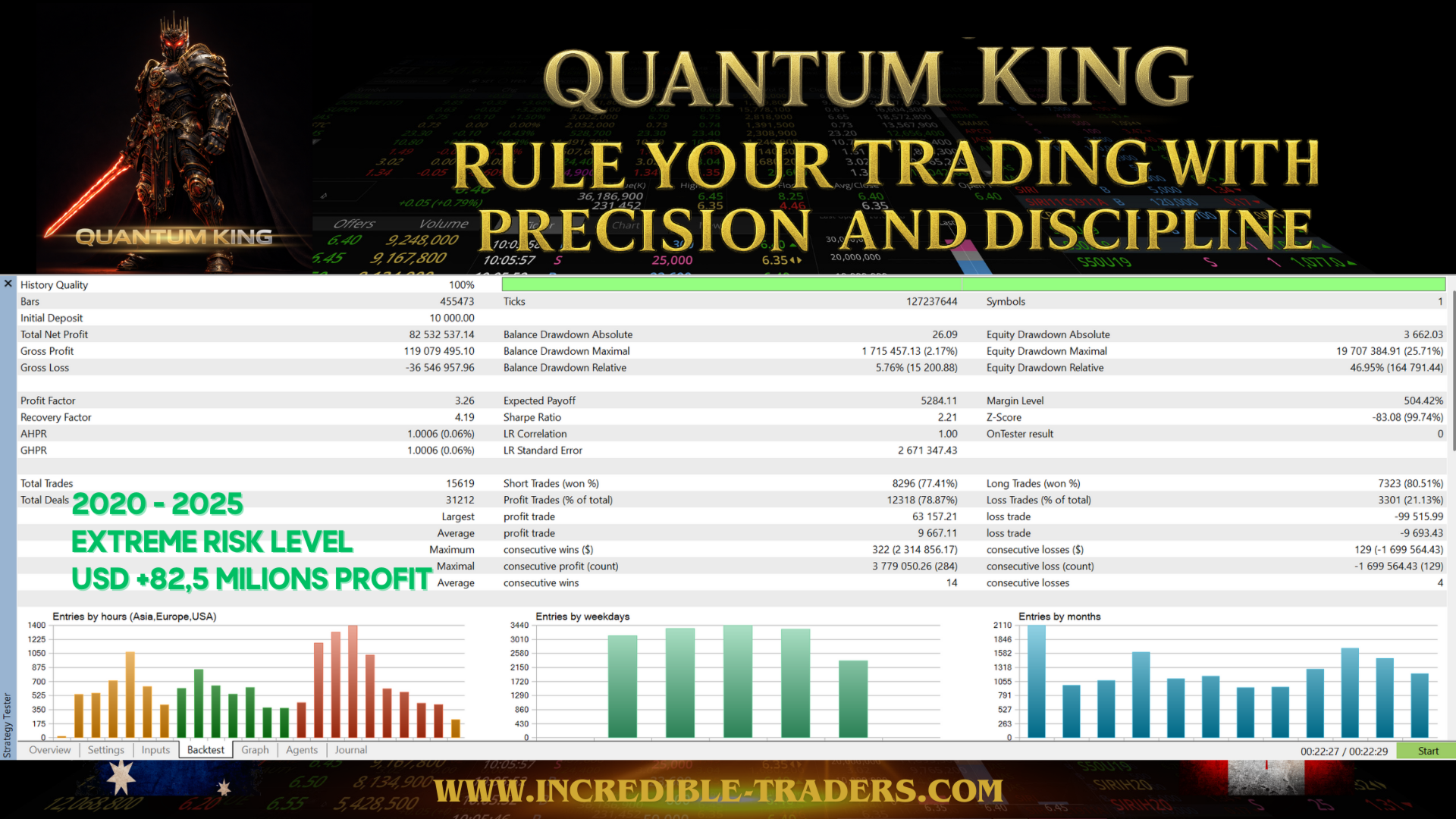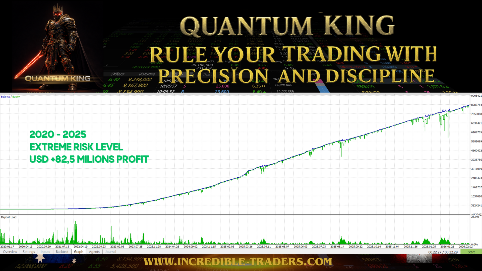 Quantum King , созданный для обеспечения доступности и стабильности, идеально подходит для трейдеров, желающих увеличить свой капитал без постоянного ручного вмешательства. Его настройка проста, исполнение быстрое, а производительность сбалансирована, что делает его отличным выбором как для новичков, так и для опытных трейдеров.