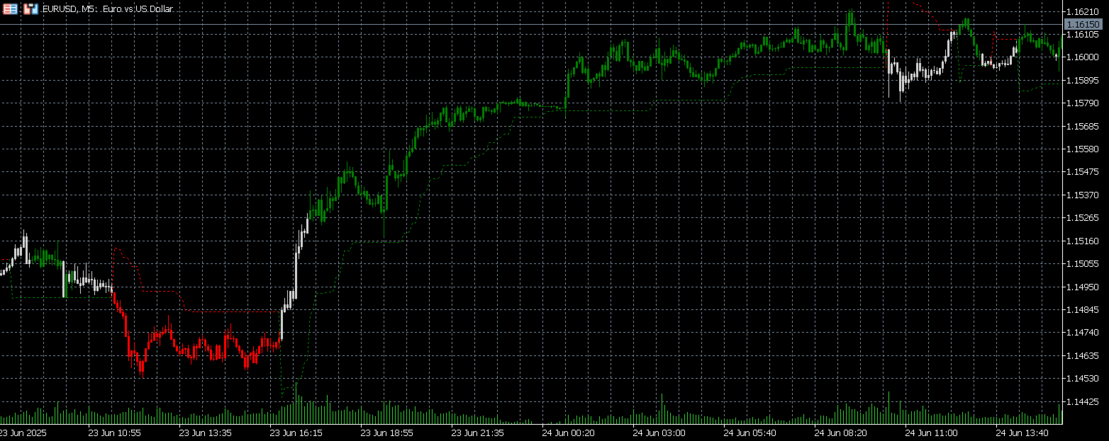 Лучшая практика - Используйте зеленые свечи для длинных входов со стоп-лоссом ниже линии SuperTrend, а красные свечи для коротких входов со стопами выше линии. Выходите из позиций, когда свечи становятся серыми, сигнализируя о потере тройного подтверждения до полного разворота тренда. Отрегулируйте множитель ATR (по умолчанию 5.0) в зависимости от волатильности рынка - более низкие значения обеспечивают более узкие стопы для скальпинга, более высокие значения подходят для свинг-трейдинга с более широкими колебаниями цен.