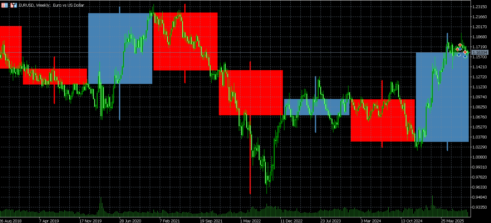 The visual representation updates automatically as new data arrives, maintaining historical accuracy while adapting to current market conditions. Yearly Candles is particularly valuable for swing traders, position traders, and investors who need to understand the broader market context before making long-term decisions. By overlaying yearly structures on top of your regular chart, you can see exactly how current price action relates to historical yearly patterns, making it easier to anticipate potential breakouts, reversals, or continuation moves based on years of accumulated price behavior.