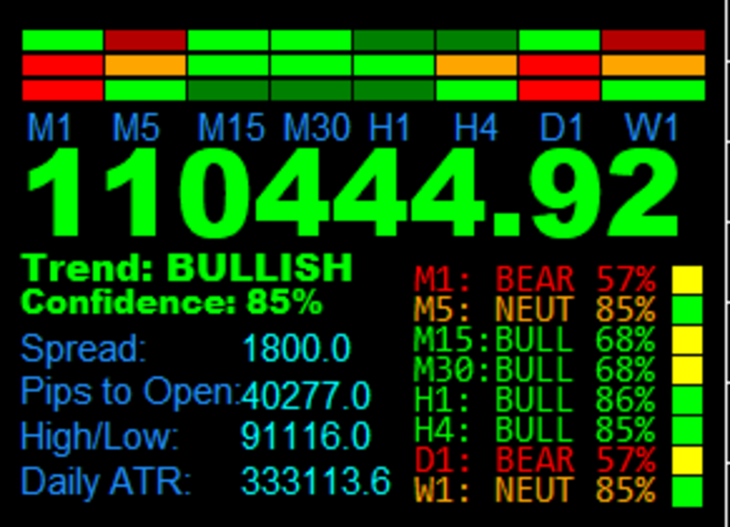 Multi-Timeframe Matrix: view synchronized signals from M1 to W1 instantly.
