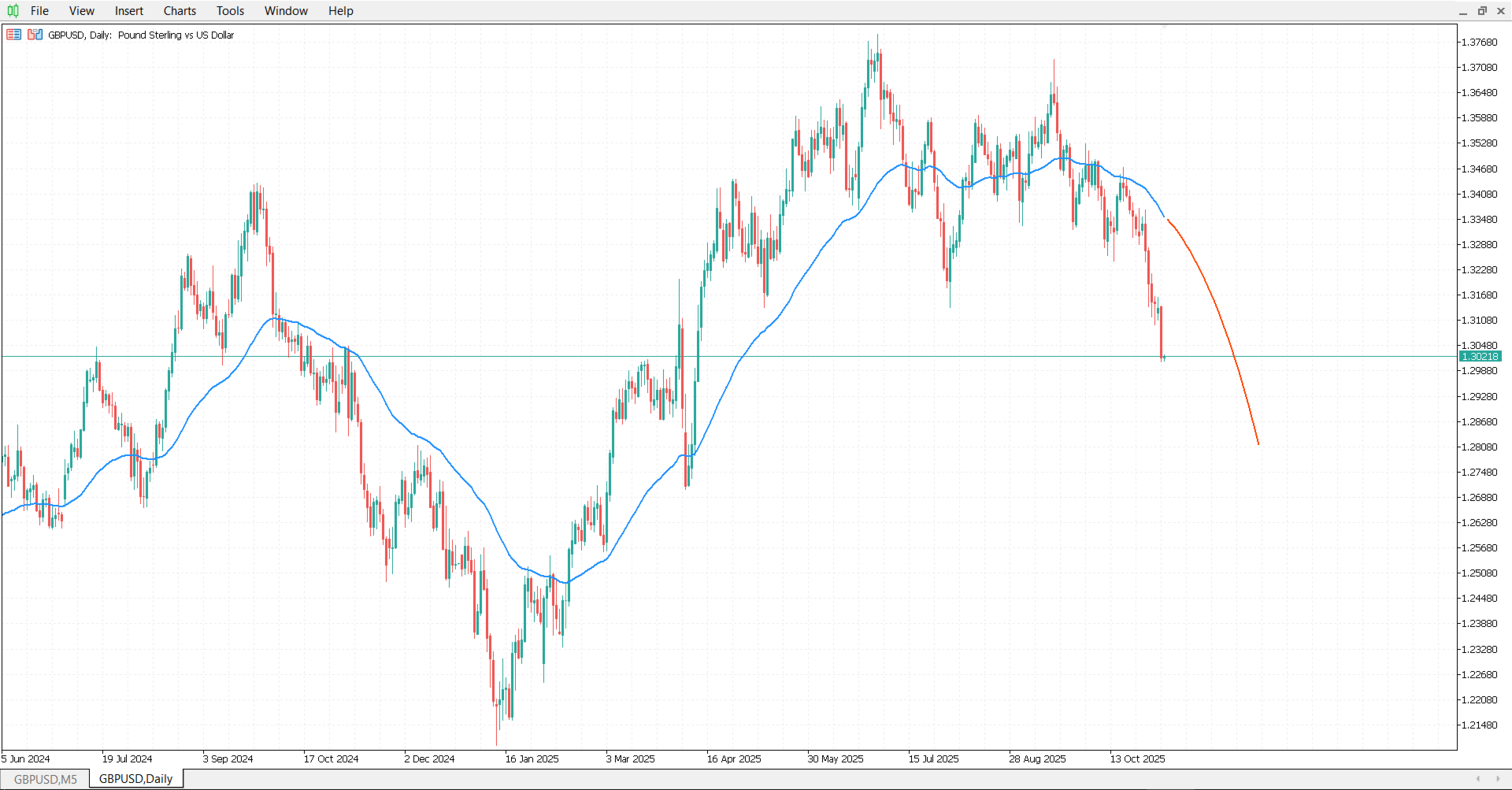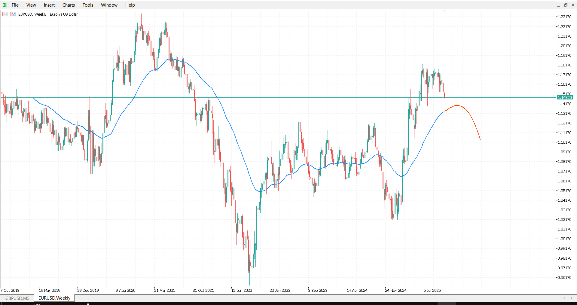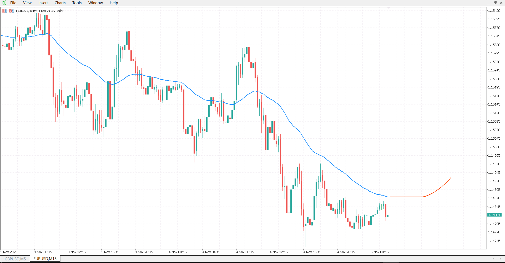Orange Line (Forecast MA): This line extends forward by 40 bars, showing the projected path of the moving average. It is shifted visually into the future, so you can clearly see where the market might be heading.