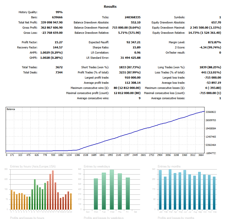 Результаты показывают стабильный рост баланса при умеренных рисках и минимальных просадках.