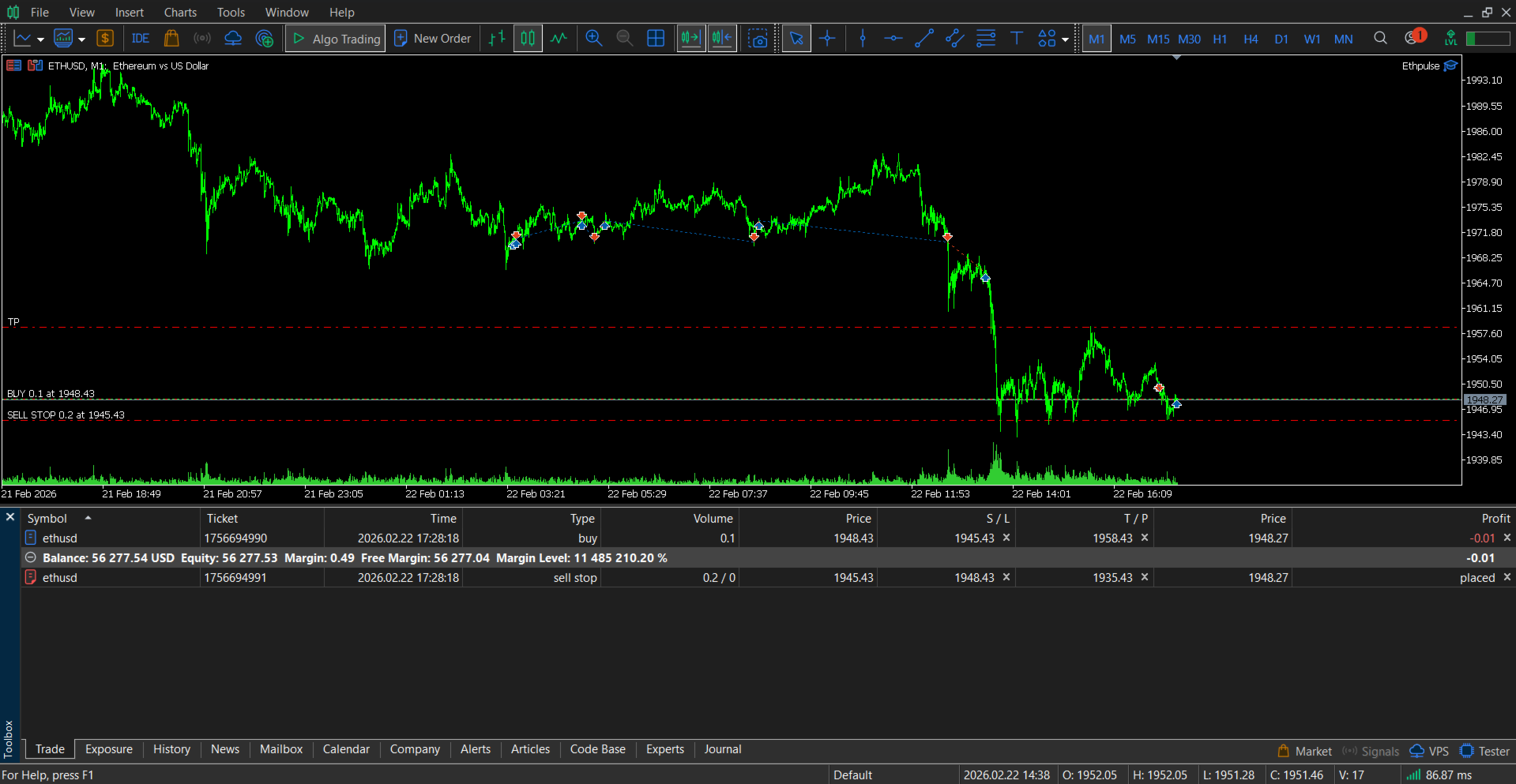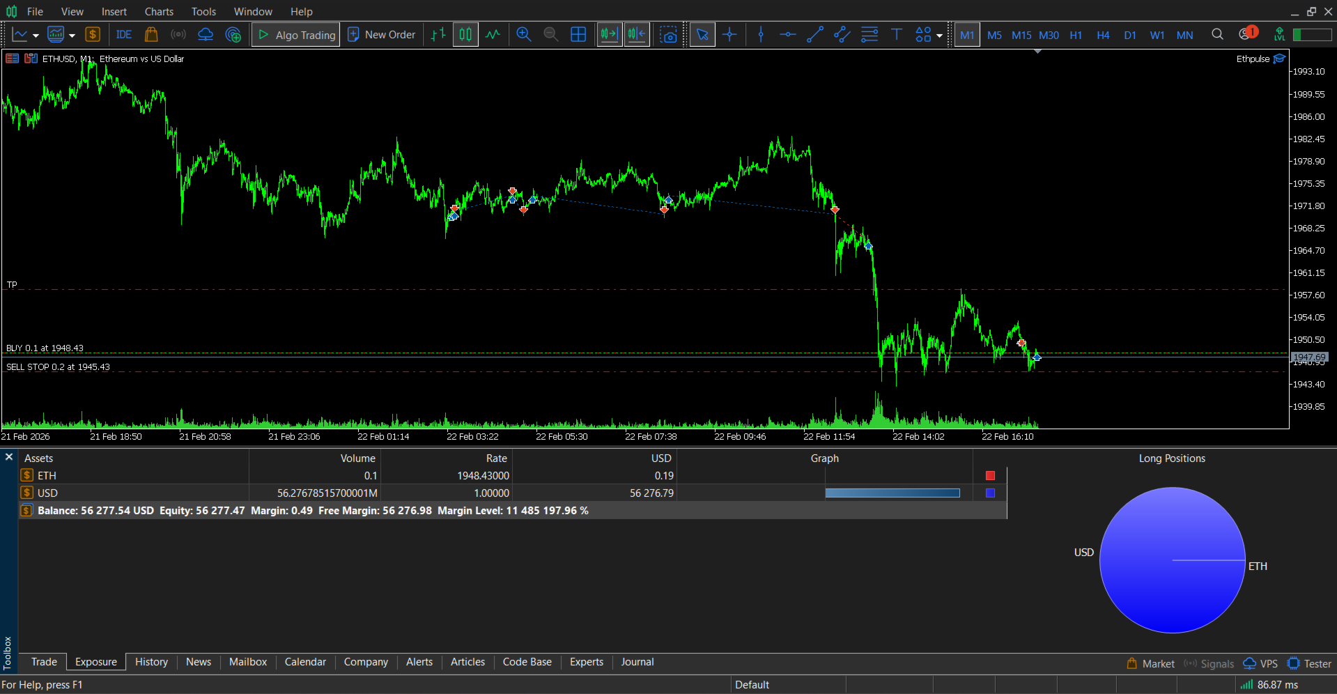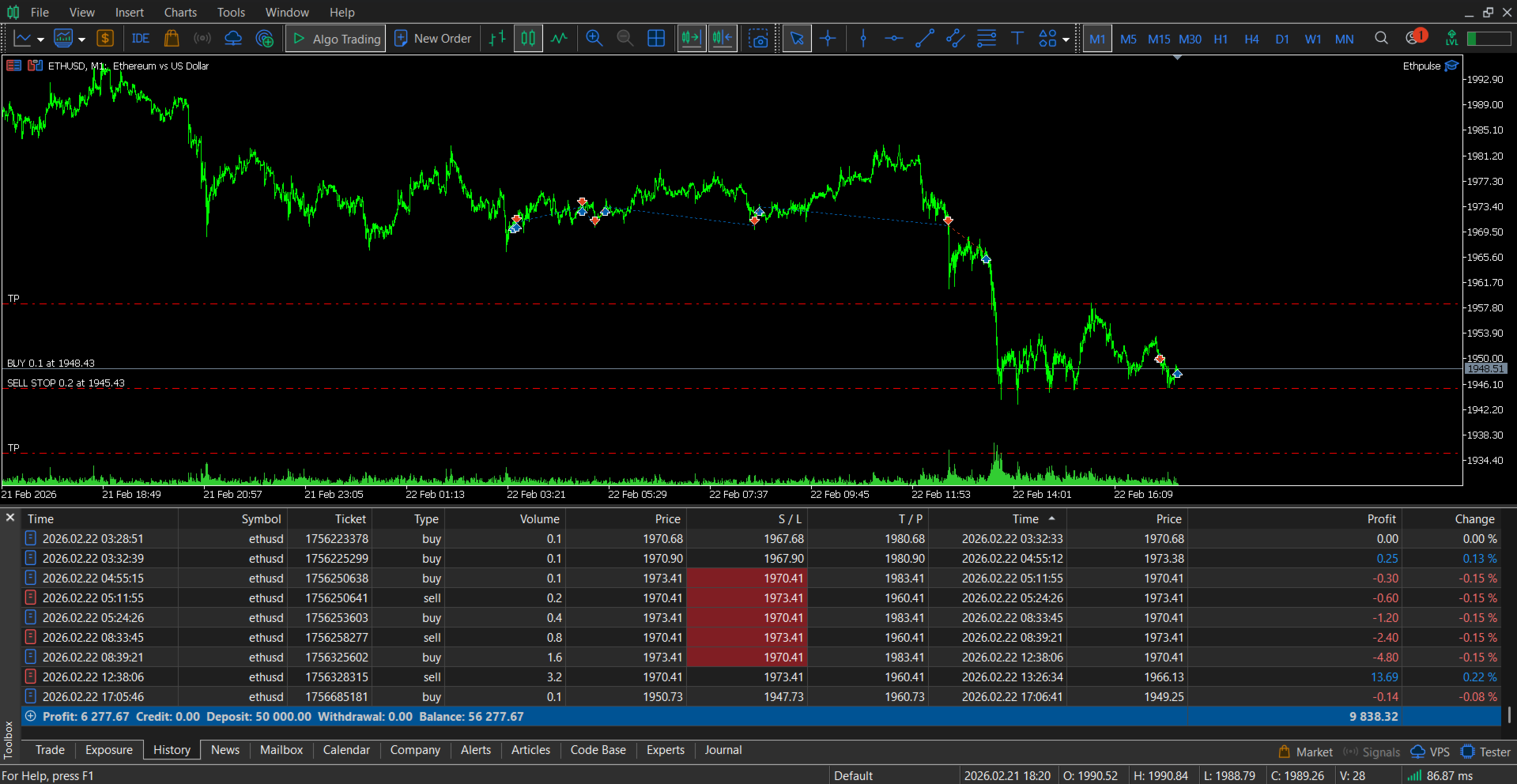 This EA utilizes a controlled martingale recovery framework, optimized specifically for Ethereum’s price behavior and tight execution environments.