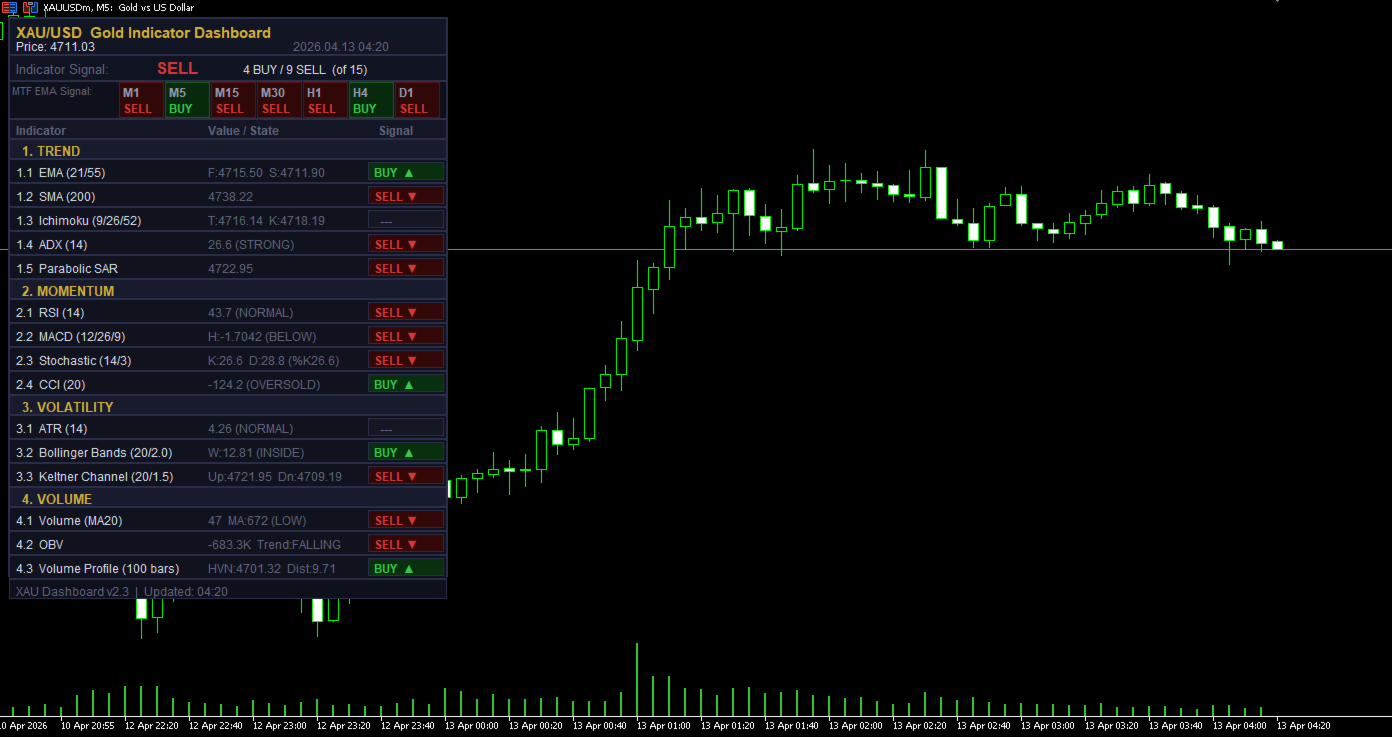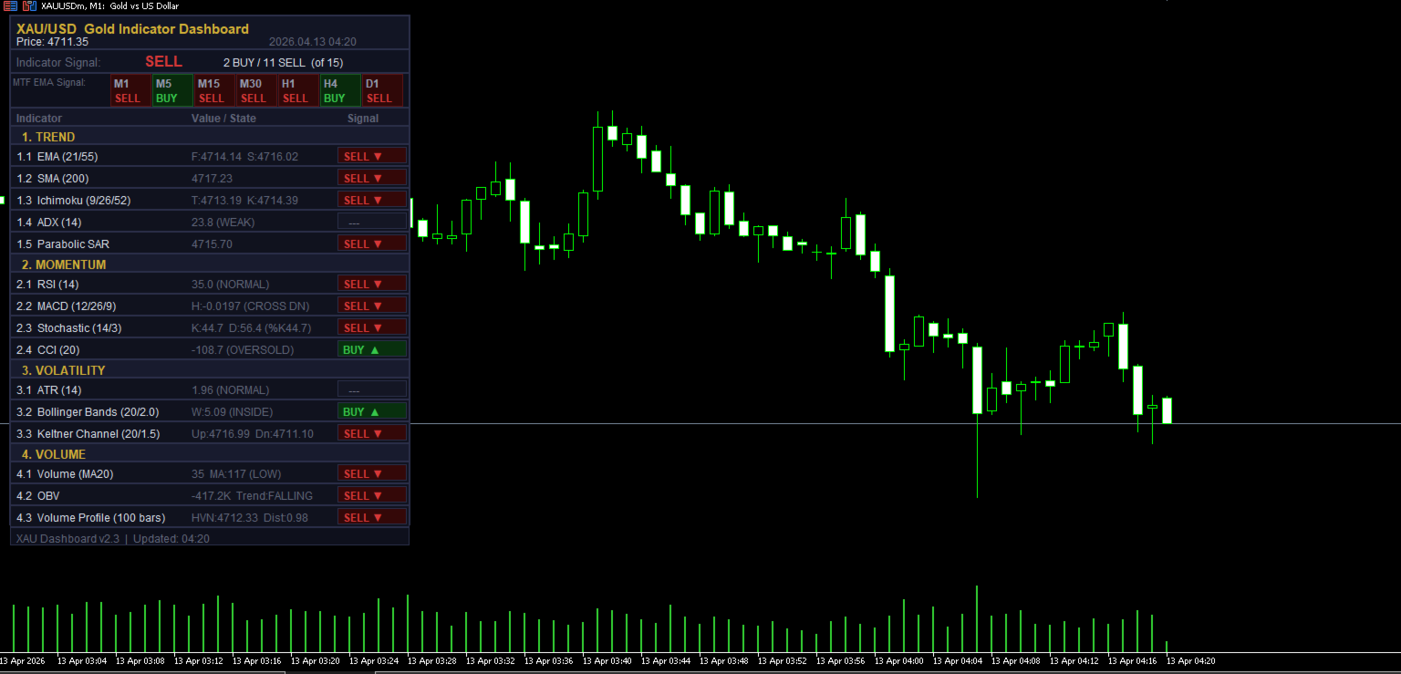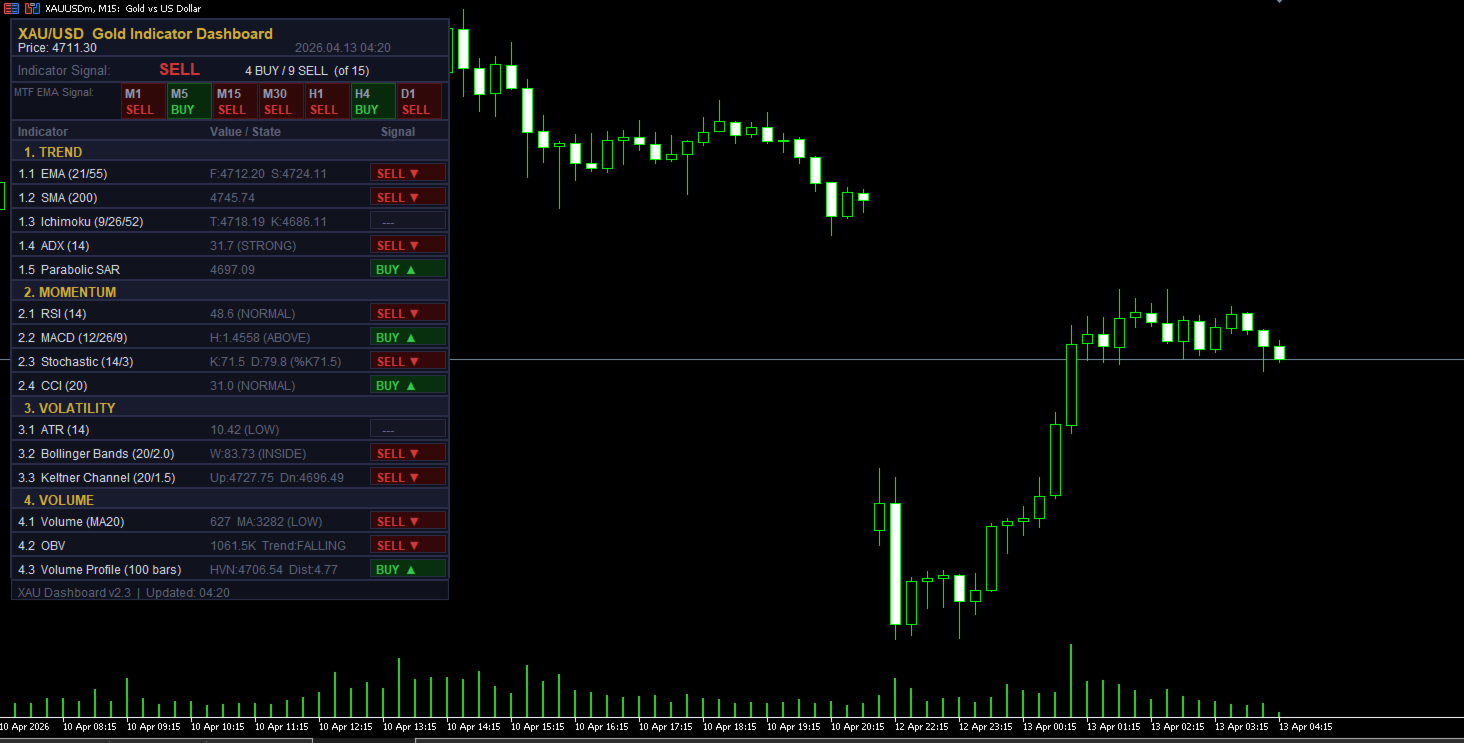 XAU Dashboard Pro combines 15 powerful indicators into one clean, real-time panel, delivering instant BUY / SELL signals with full market context — so you can trade gold faster, smarter, and with confidence.