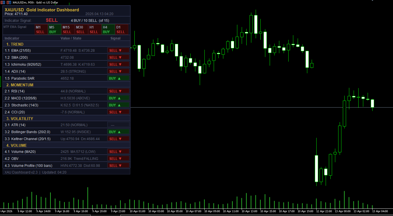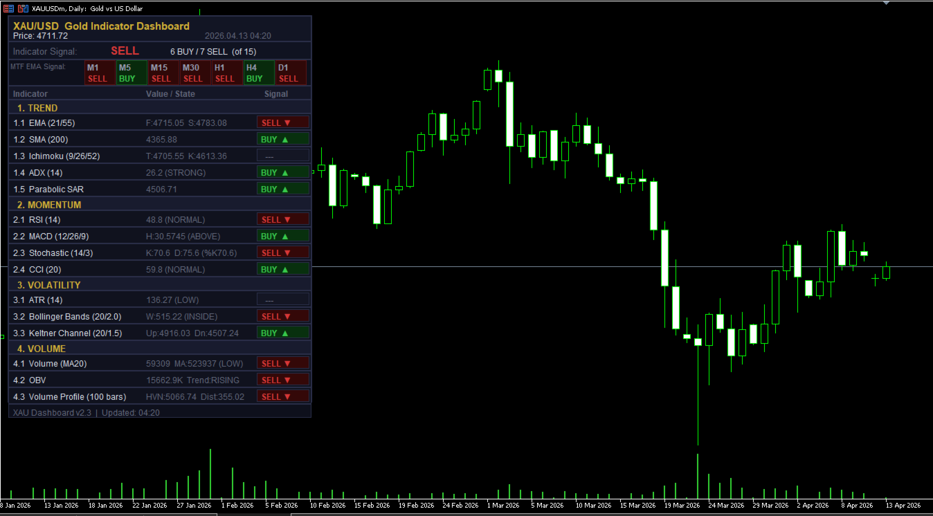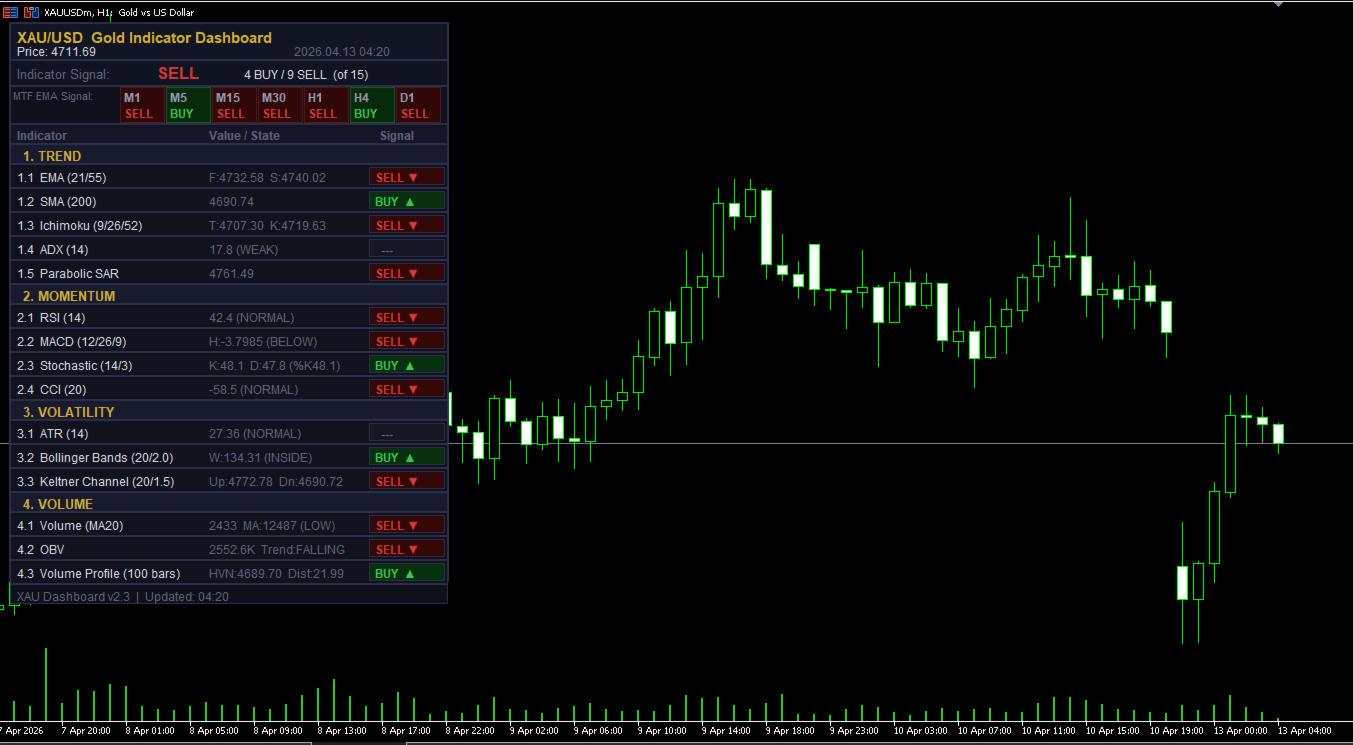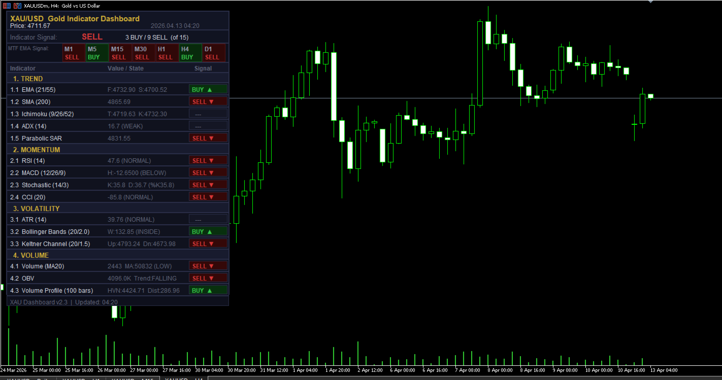 XAU Dashboard Pro combines 15 powerful indicators into one clean, real-time panel, delivering instant BUY / SELL signals with full market context — so you can trade gold faster, smarter, and with confidence.