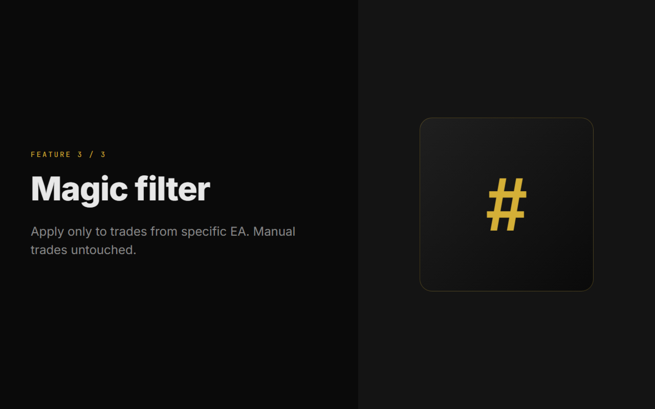- Threshold adjustable per symbol type: configurable per magic number or for all trades