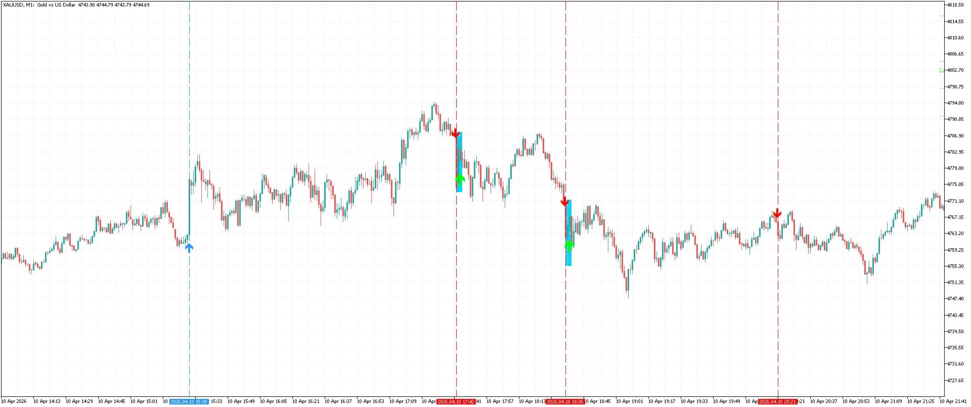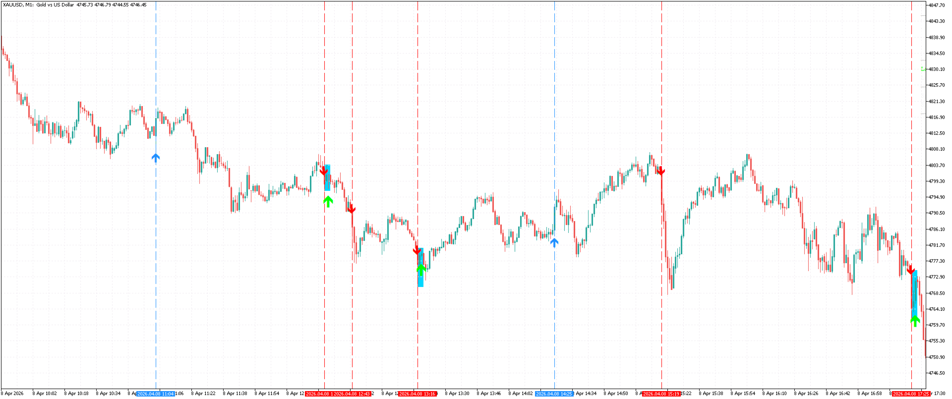 Backtested as automated Expert Advisor under default settings, M1, XAUUSD, Jan-Apr 2026