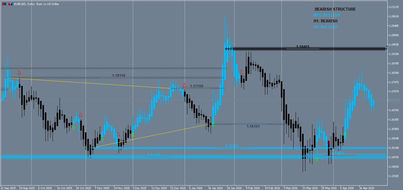 Gives a broader perspective by showing directional bias from higher timeframes directly on your chart.