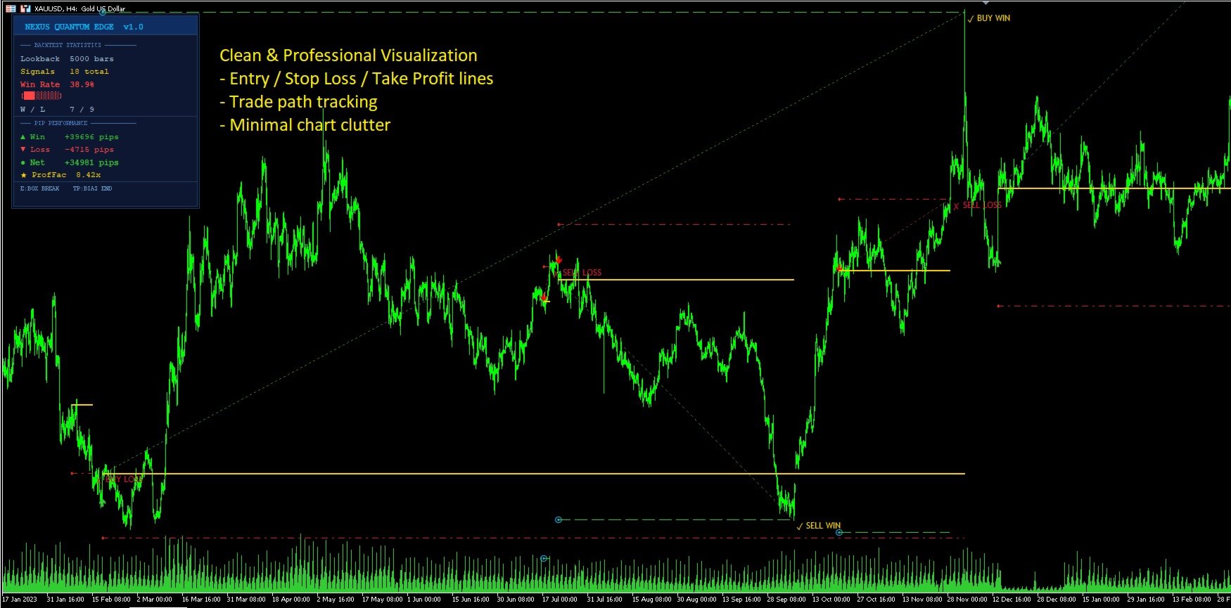 NEXUS QUANTUM EDGE INDICATOR is a professional trading indicator designed to help traders follow high-probability trends and enter at optimal risk/reward zones.
