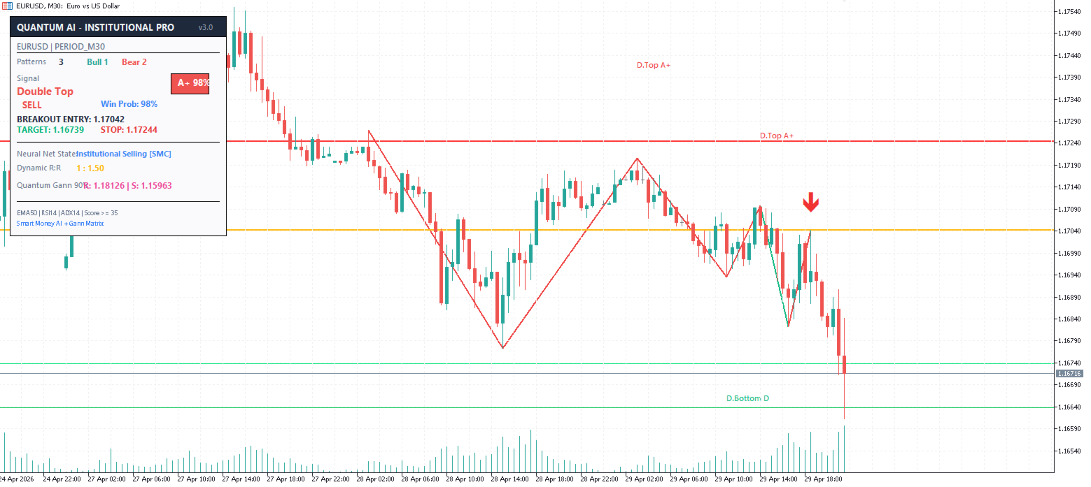 Quantum AI - Institutional Pro is an elite, quantitative technical analysis terminal designed to replace cluttered retail indicators with a sleek, hedge-fund-grade interface.