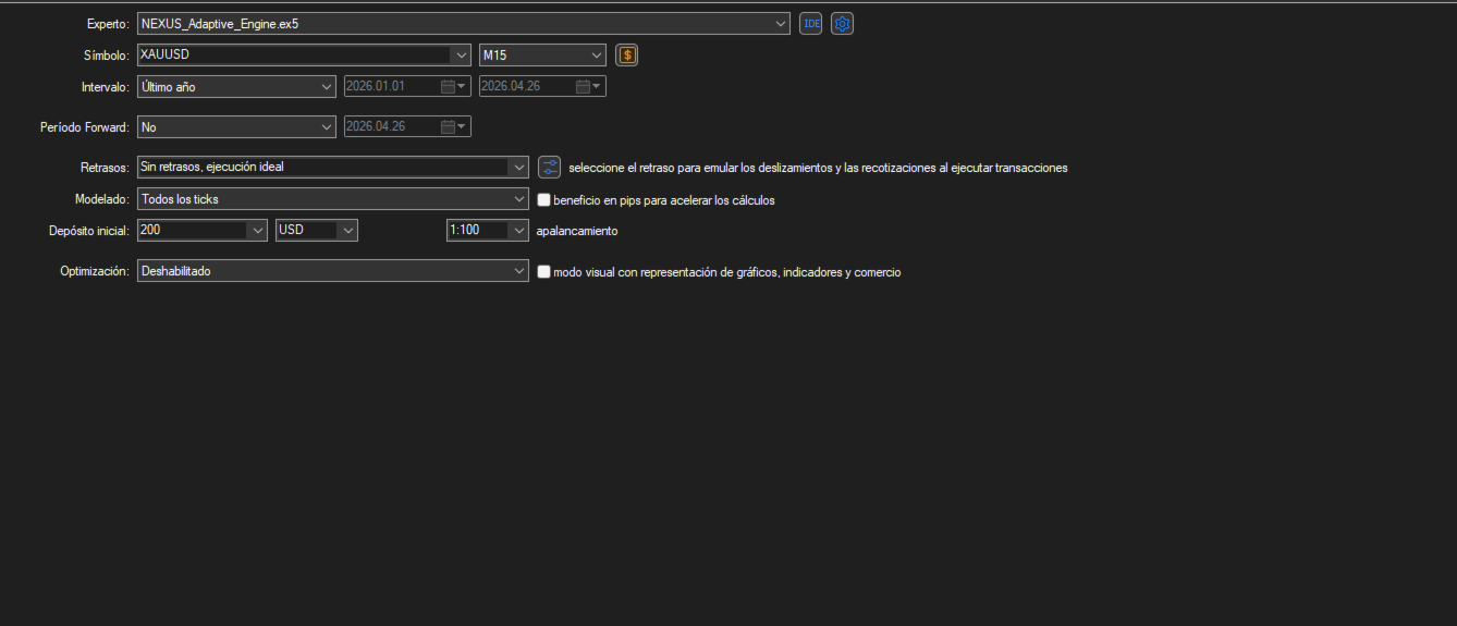 NEXUS Adaptive Engine is a next-generation Expert Advisor developed for MetaTrader 5, specifically designed to trade the XAU/USD pair (Spot Gold) on the M15 timeframe. It combines artificial intelligence, advanced technical analysis, and an adaptive grid management system to identify and execute highly accurate trades on one of the most volatile and profitable assets in the market.