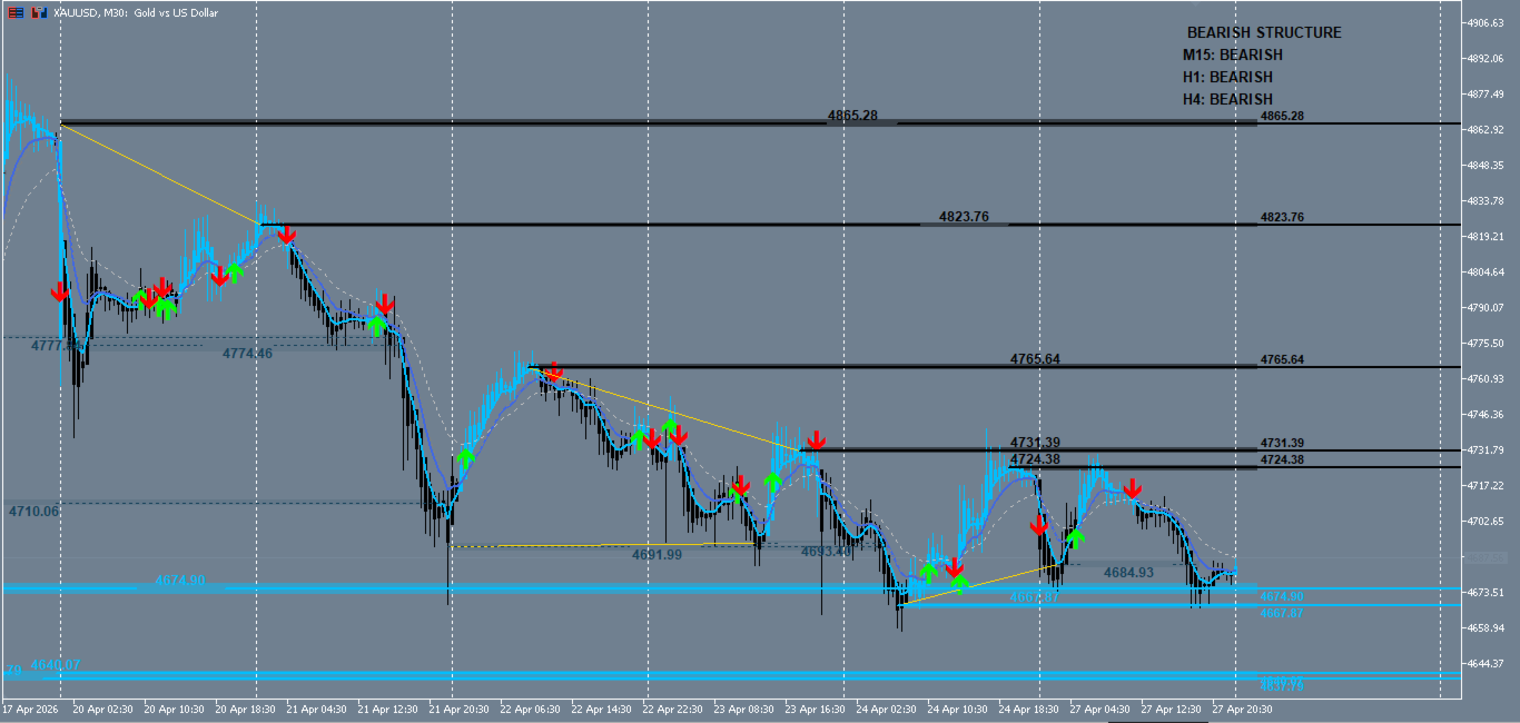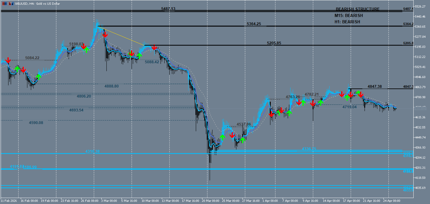 | Arrow appears above a candle | Confirmed adaptive bearish cross |