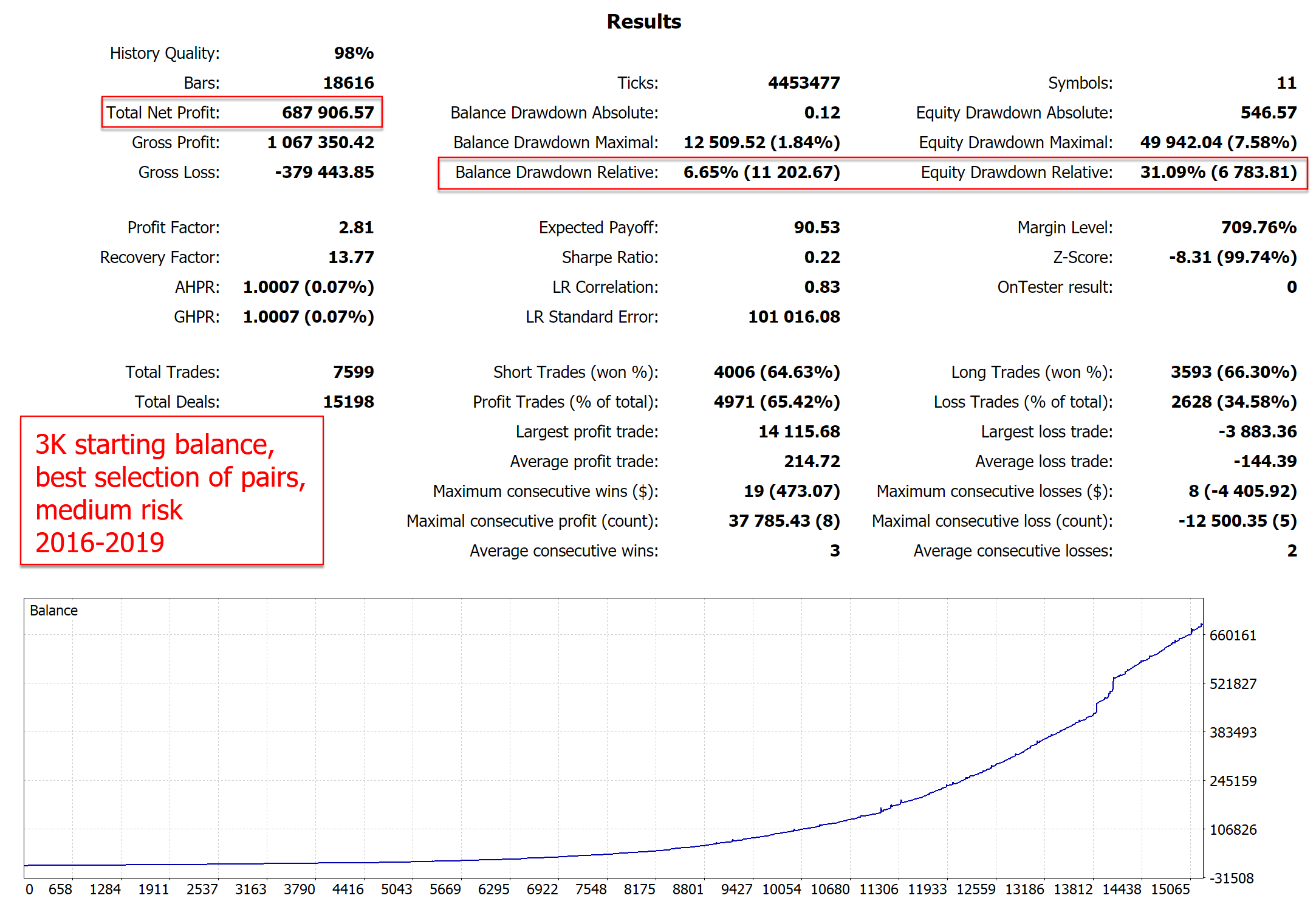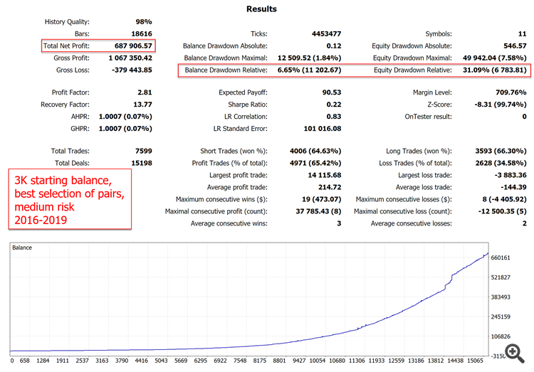 3K account test - 4 best pairs - medium risk - 2014-2019