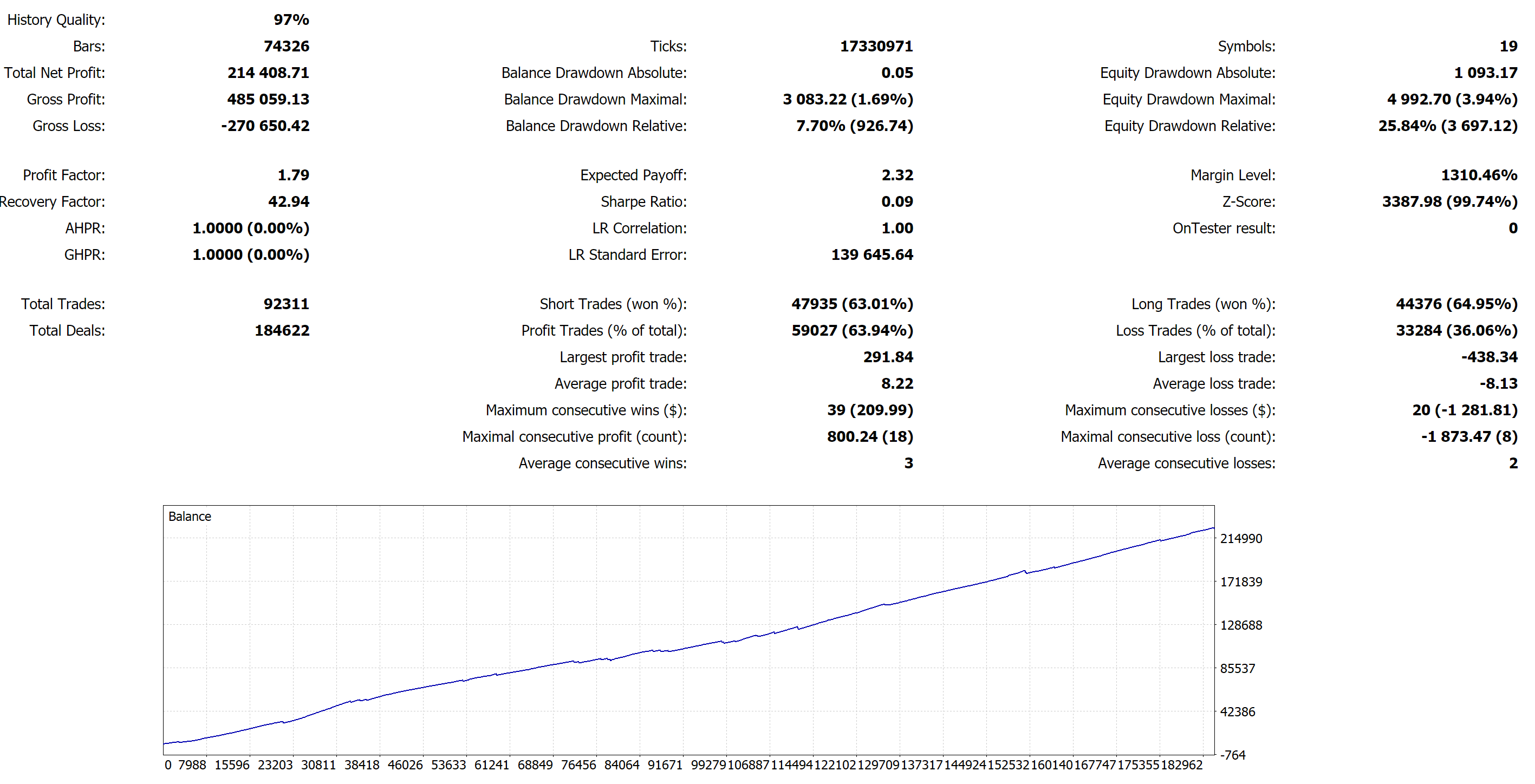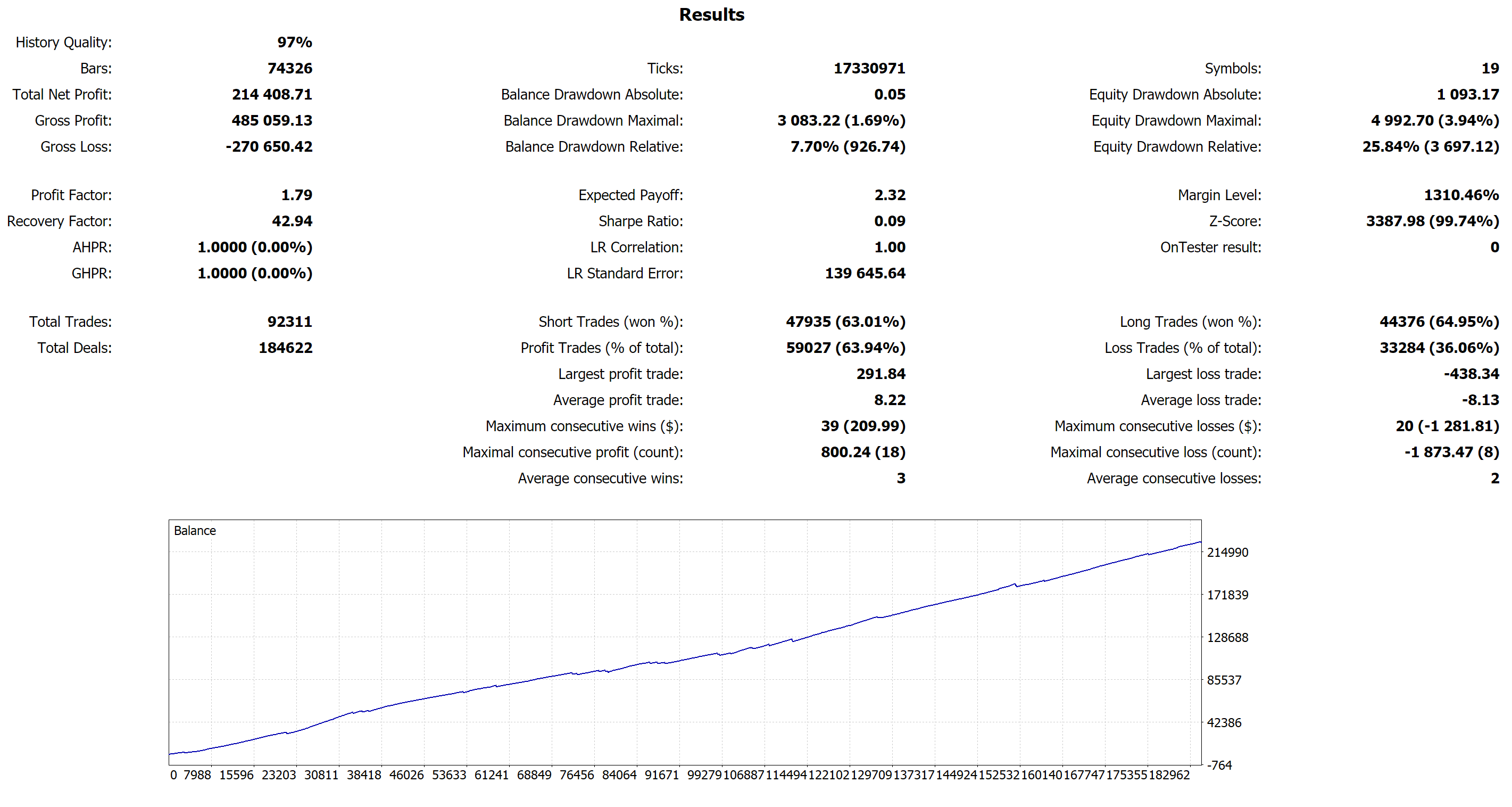 If anybody got different results than this, just let me know and I can look into what might cause the difference. But MQL5 uses standard data, so tests should be the same.