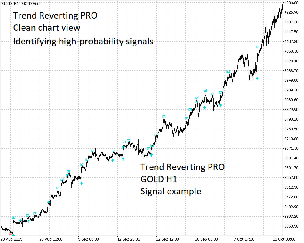 Trend Reverting PRO for MetaTrader 4 is designed to spot key price action moments:
