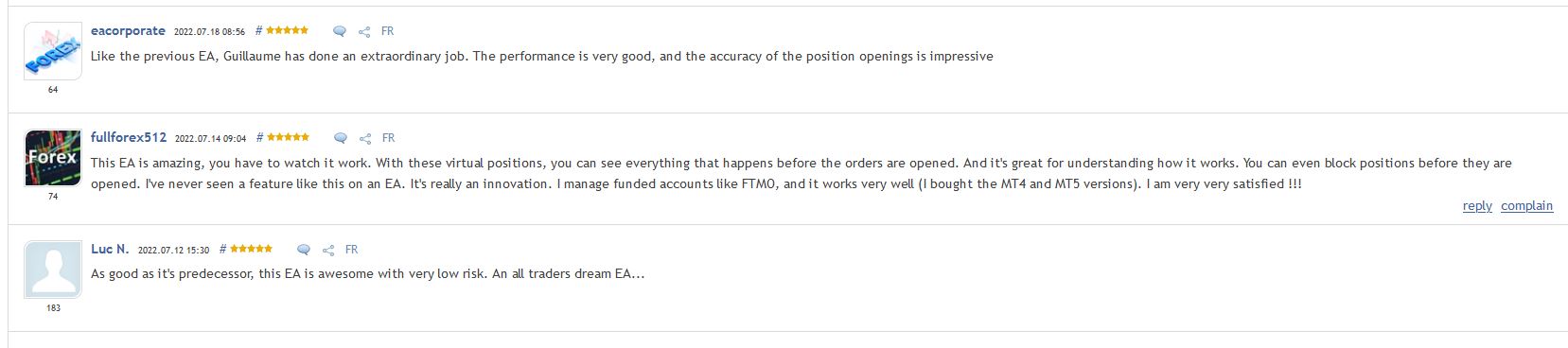 This EA is amazing, you have to watch it work. With these virtual positions, you can see everything that happens before the orders are opened. And it's great for understanding how it works. You can even block positions before they are opened. I've never seen a feature like this on an EA. It's really an innovation. I manage funded accounts like FTMO, and it works very well (I bought the MT4 and MT5 versions). I am very very satisfied !!!