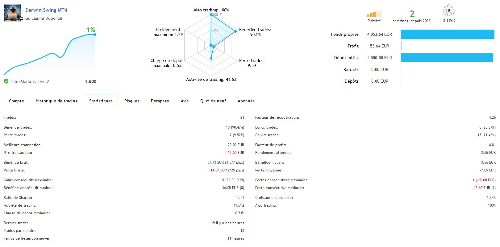 Like the previous EA, Guillaume has done an extraordinary job. The performance is very good, and the accuracy of the position openings is impressive