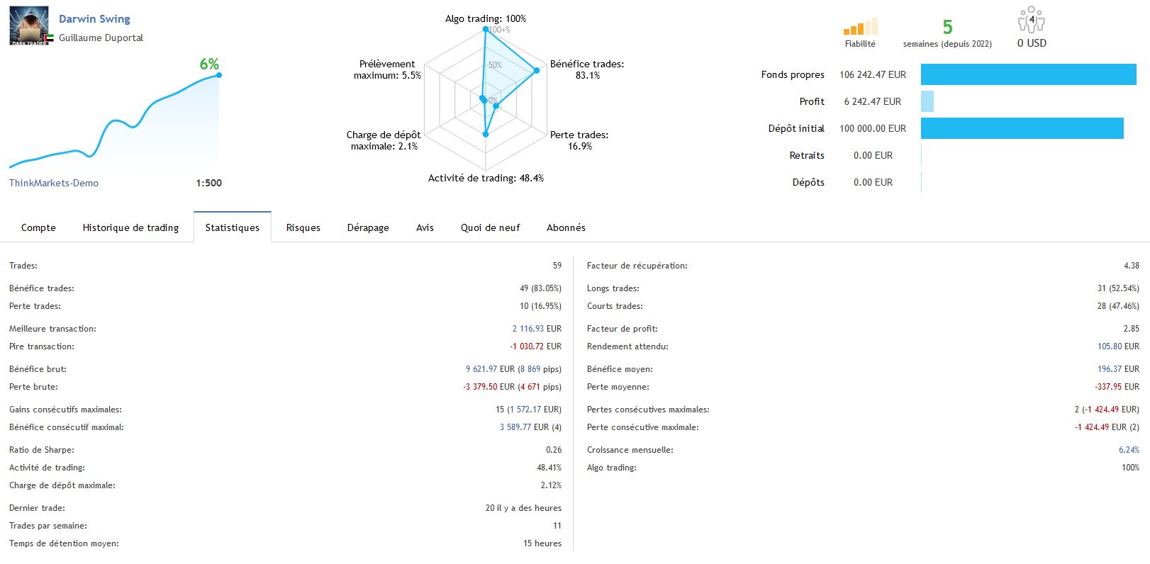 If you understand that Darwin Swing already has price factors into consideration, as it leaves before opening a lot of S/R, then you will understand that the chances of having a huge DD is very limited.