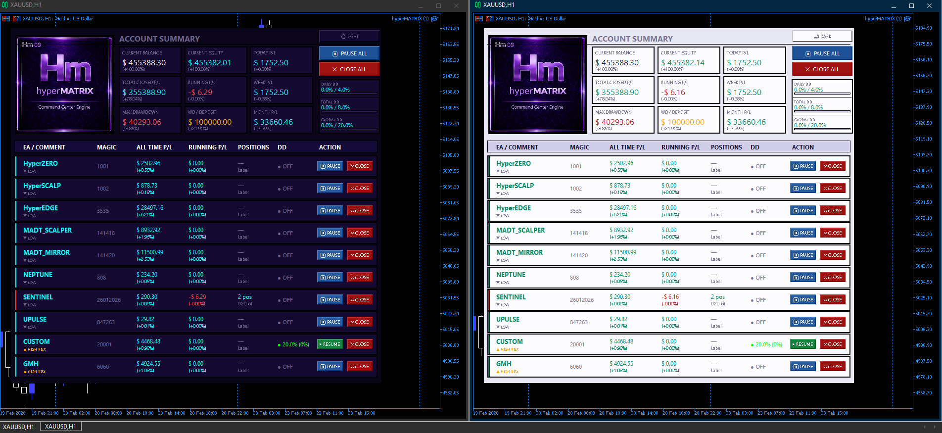This EA helps you secure your account by giving you full control over risk management. You can set daily drawdown, maximum drawdown, global drawdown, and per-EA drawdown limits. It can pause or close individual EAs, or even control the entire account globally. This EA is very useful if you’re running multiple EAs on one account or trading with a prop firm. will launch soon ...