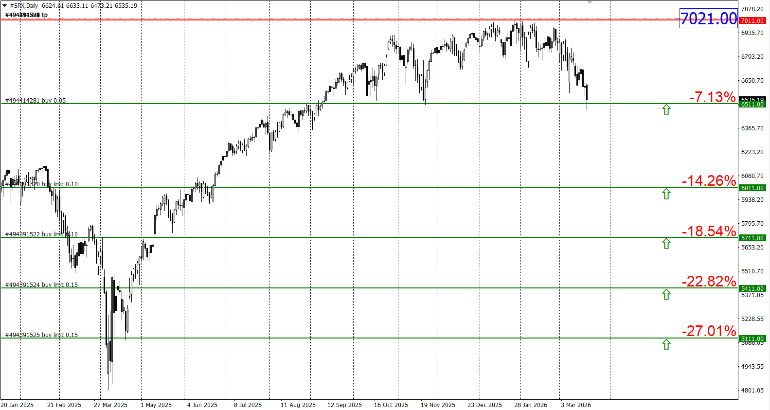Таким образом можно будет покупать частями данный индекс в среднесрочной перспективе с профитами на обновление исторического максимума на 7011, то есть профит ставить на 7021 или немного выше, а покупать от 6511, потом можно будет ещё долиться в покупки от 6011, 5711 и если вообще упадём до 5411 и 5111, где можно будет даже увеличить лот, но вряд ли сильно сможем упасть, как по мне падение даже, если и продолжится вряд ли будет ниже 5711.