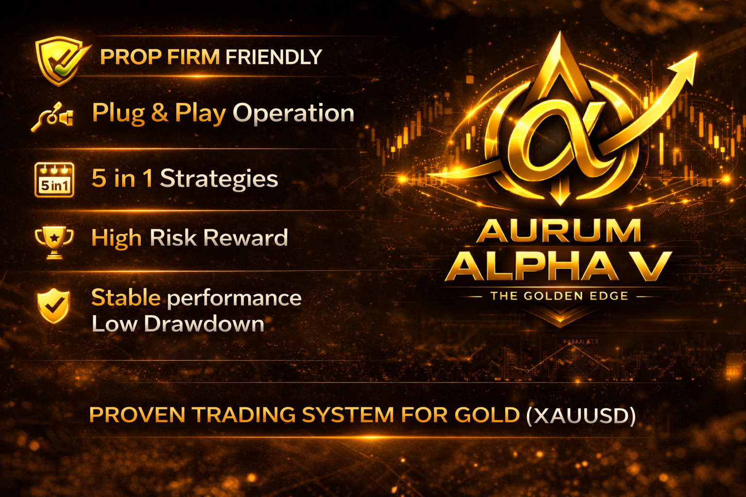 Aurum Alpha V is a professional 5-in-1 multi-strategy Expert Advisor designed exclusively for Gold (XAUUSD) . The system is built as a plug & play solution — simply attach it to the H1 timeframe , and it will start trading automatically using its integrated execution logic. Instead of relying on a single trading concept, Aurum Alpha V combines 5 independent, proven trading strategies within one unified framework. Each strategy is based on well-established and previously tested trading