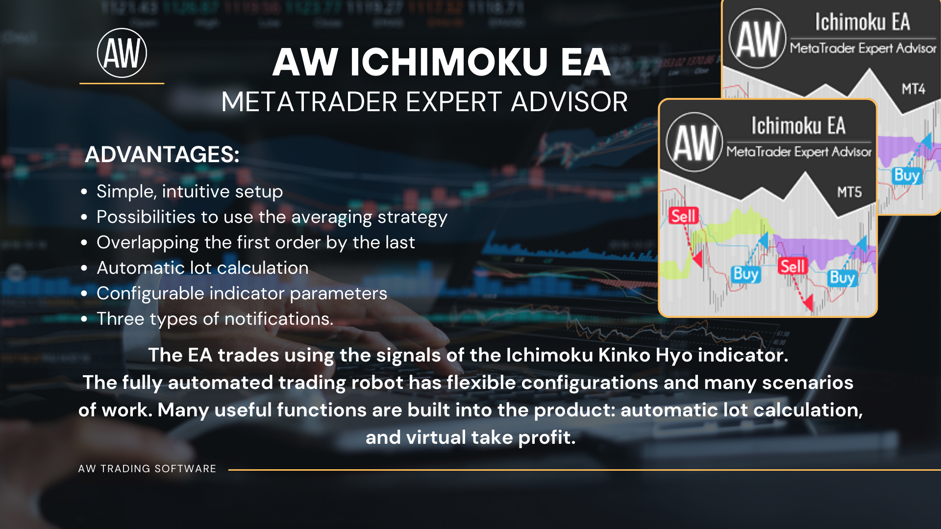 AW Ichimoku EA trades using the signals of the Ichimoku Kinko Hyo indicator.