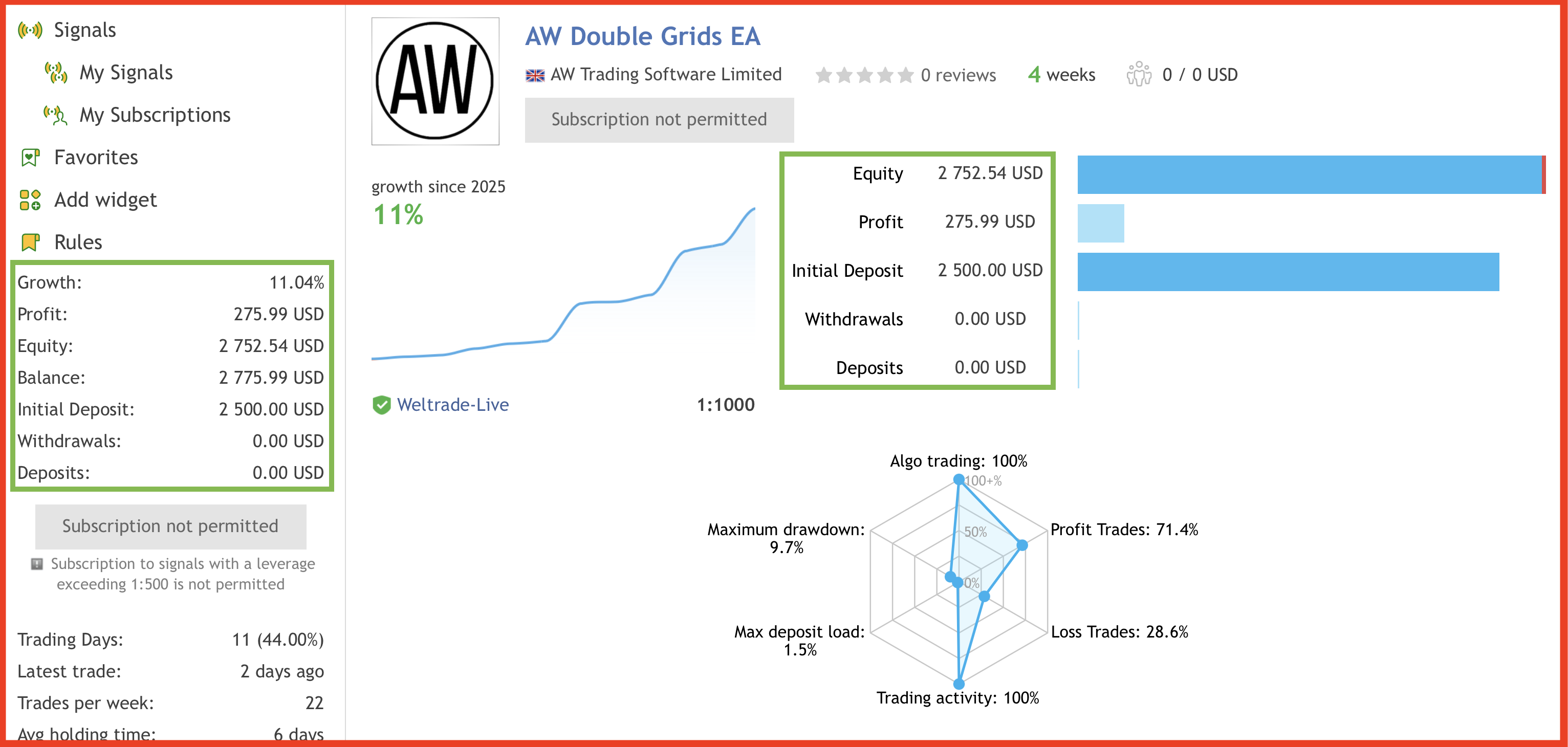 The AW Double Grids Expert Advisor is working.