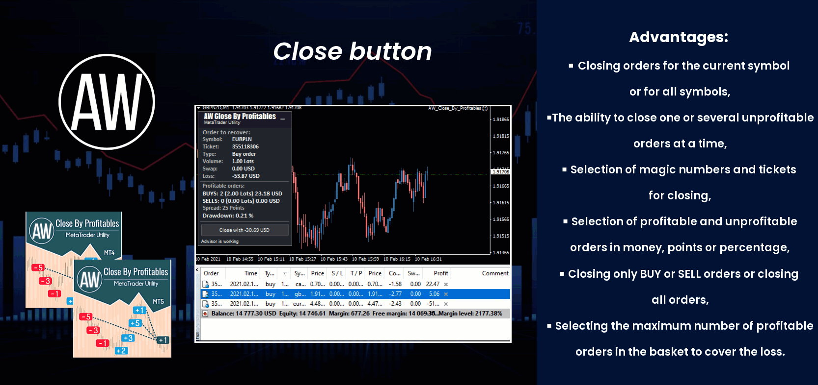 📌The ability to close one or several unprofitable orders at a time