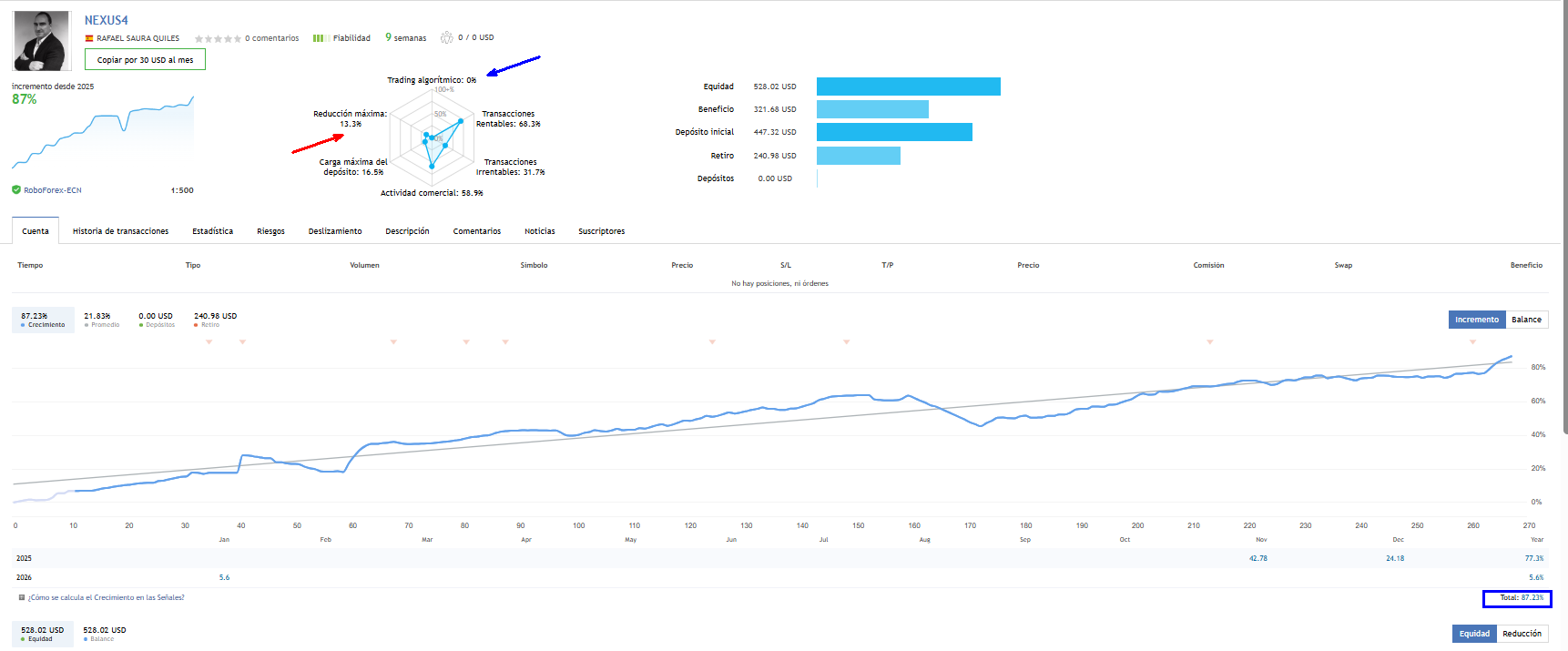 Os hago saber que la cuenta NEXUS4 replica una cuenta mayor en un bróker con apalancamiento bajo, pero se ha ajustada ya del todo para que replique con un bajo riesgo nuestras mismas operativas.