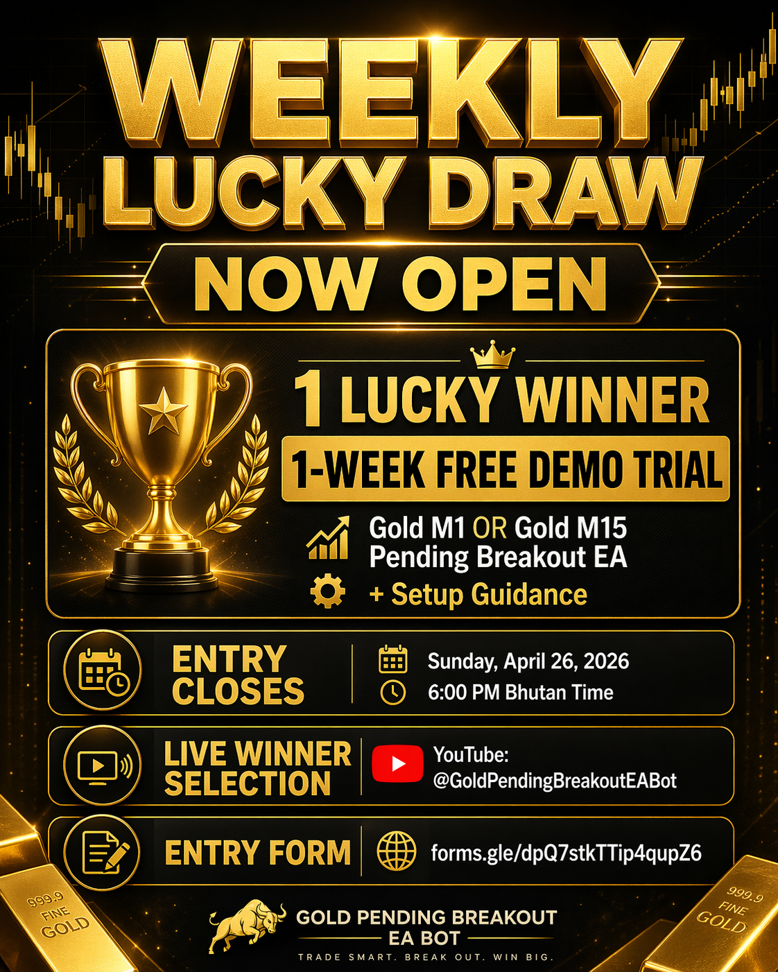 Don't Miss it, Stay tuned And Subscribe To My YouTube Channel for LIVE Lucky Draw: https://www.youtube.com/@GoldPendingBreakoutEABot