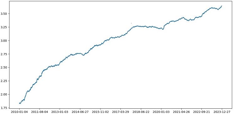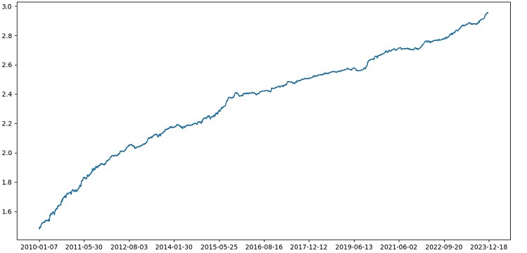 Sınayıcı genel olarak başarılı bir şekilde çalışıyor ve çok güzel bir karlılık grafiği görüyoruz. Bu, markup ve etiketleri dikkate alarak bir makine öğrenimi alım-satım modelinin karlılığını analiz etmek için özel bir sınayıcıdır.