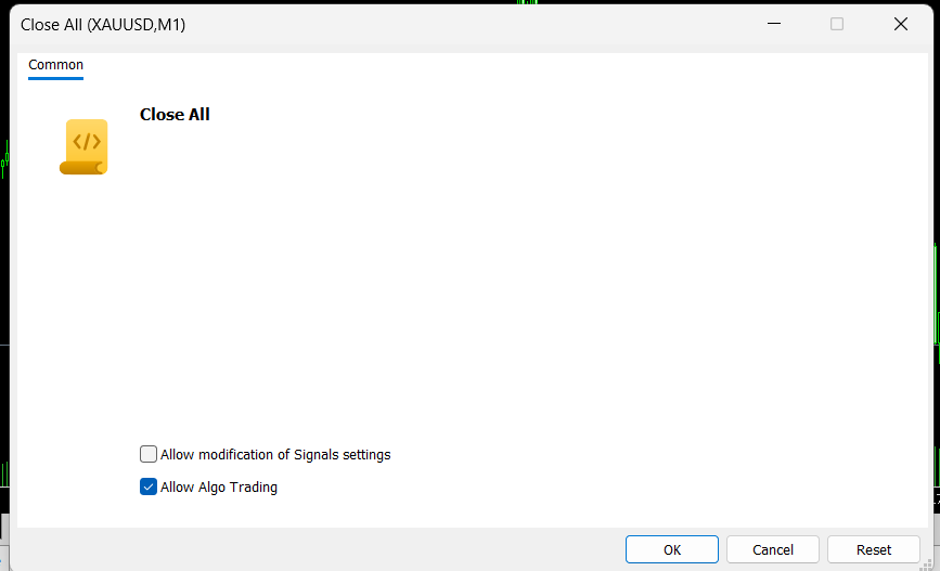 ClosePositions(symbol): Closes all open positions for a specified symbol (or current chart symbol if none provided).