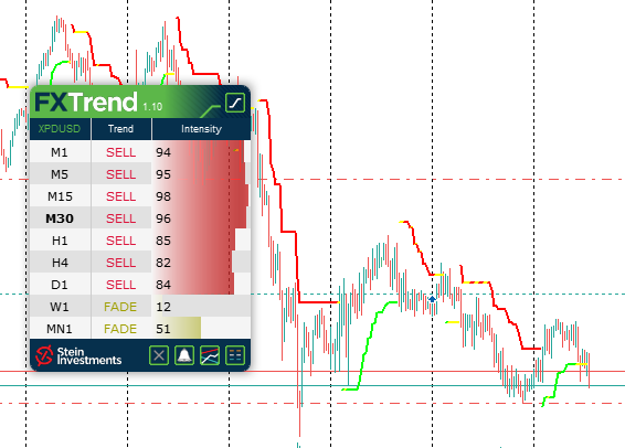 The trendline you see turning yellow is part of that transition. The FADE state you would expect appears when the trend is weakening but still intact. Once it actually breaks, the indicator moves straight to the new direction. The trendline for the new trend will be drawn on the next bar that opens in the same direction.