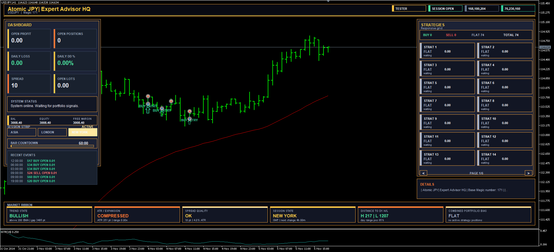 Atomic JPY, USD/JPY (ABD Doları/Japon Yen) döviz çiftinin saatlik grafiğinde uzmanlaşmış otomatik bir işlem sistemidir. Bu grafik üzerinde piyasa yapısını, trend yönünü ve fiyat dalgalanmalarını analiz ederek, titiz ve metodik bir yaklaşımla sistematik olarak işlem fırsatlarını belirler.