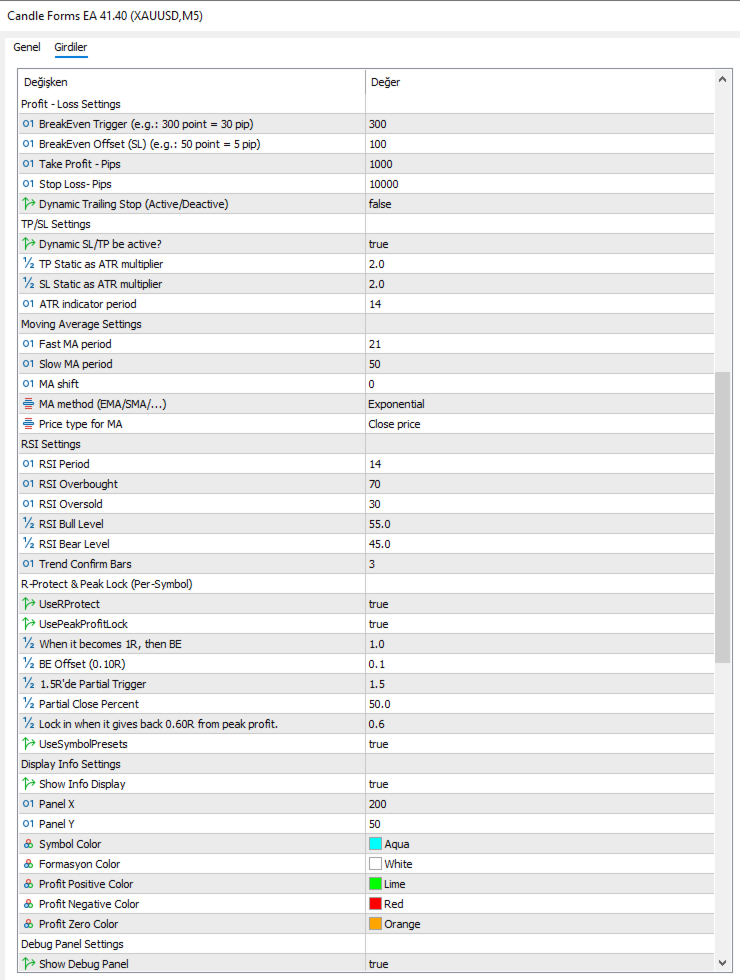 Dilerseniz sabit pip cinsinden TP/SL değerleri de kullanılabilir.