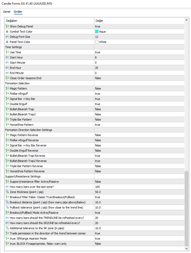 Candle Forms EA, gelişmiş fiyat aksiyonu (Price Action) algoritmalarını teknik analizle birleştiren, 6 farklı stratejiyle çalışan çok yönlü ve akıllı bir ticaret robotudur. Mum formasyonlarına dayalı güçlü sinyallerle esnek, disiplinli ve güvenli işlemler açar.