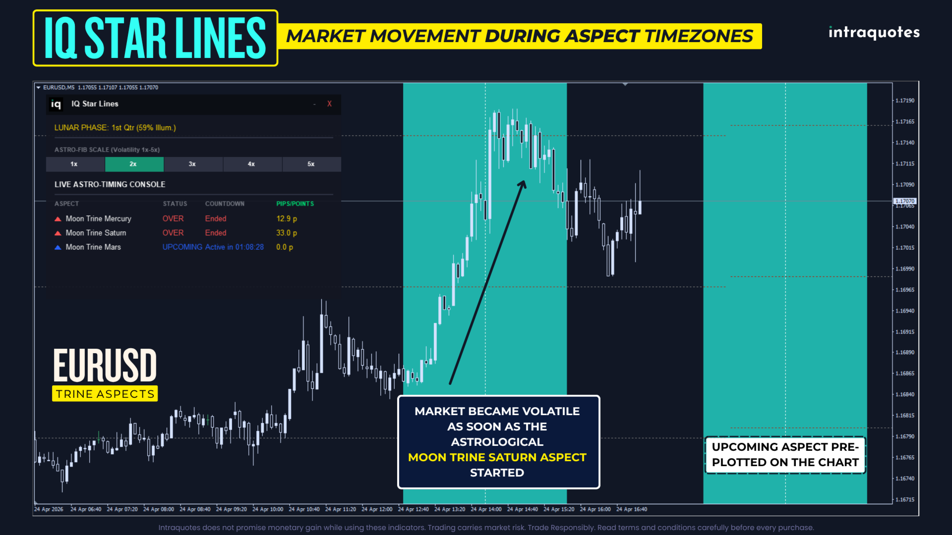 Note: IQ Star Lines always plot aspects timings aligned to the your broker timing so that you never miss a good astrological trade window.