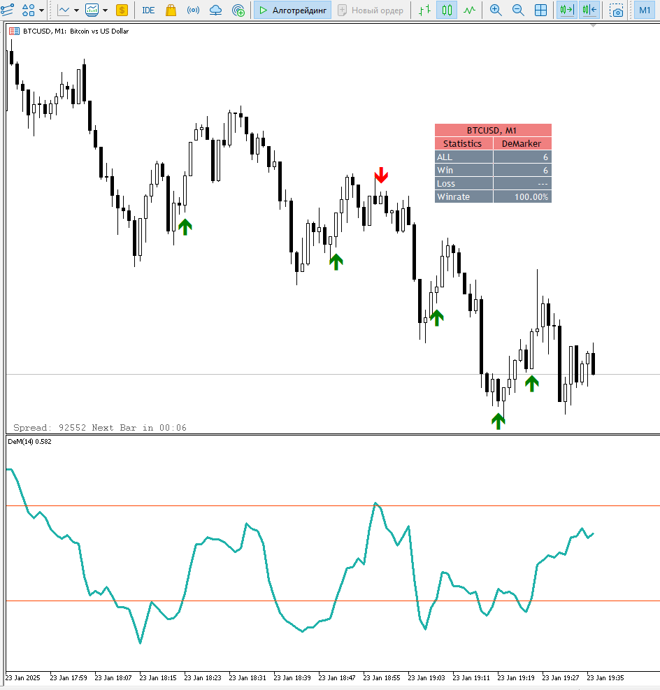 At the request of subscribers, I added a new indicator DeMarker, a very good indicator, I advise you to read about it on the Internet. And in this version with DeMarker, I returned the alerts that appear during the formation of the candle (the classic and original version was like this)