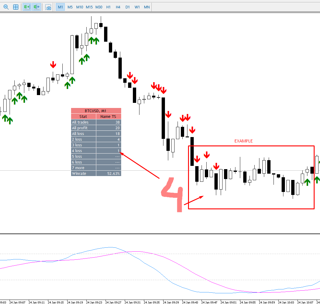 Hi, if you like trading cryptocurrency, for example, here is today's statistics for 5 hours on bitcoin, you can trade scalping forex, or trade binary options with an expiration of 3 minutes. I found this strategy on the Internet, it is based on the book High Probability Trading Strategies... by Robert C. Miner