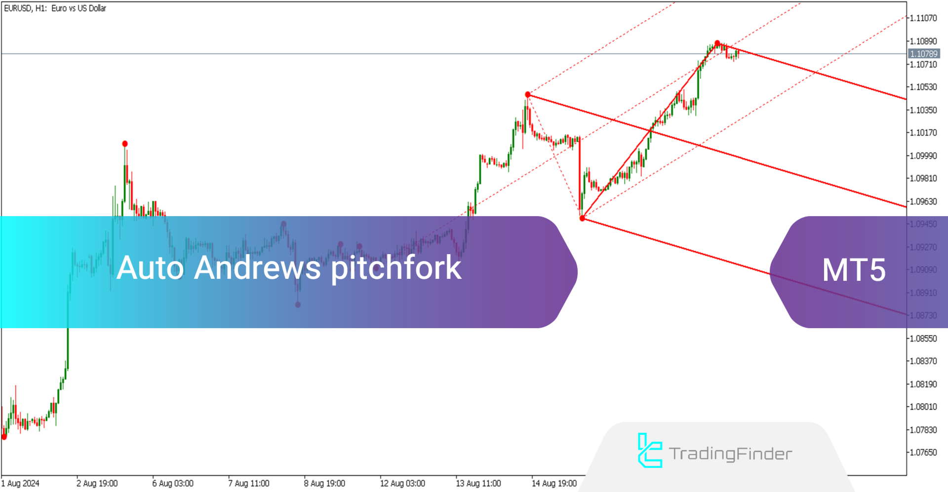 The Auto Andrews Pitchfork indicator MT5 is a specialized technical tool on the MetaTrader 5 platform that automatically plots three equidistant, parallel trendlines by using three selected pivot points (significant highs and lows). These lines serve as evolving zones of support and resistance, providing actionable trade signals when price interacts with them. This tool simultaneously generates two pitchfork patterns—one outlined in dotted lines and the other in bold red lines—highlighting essential price channels dynamically.