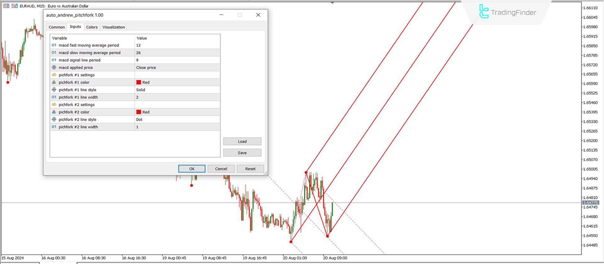 While the basic Andrews Pitchfork is accessible by default on MT4 and MT5, the Auto Andrews Pitchfork indicator MT5 automates the drawing process using live chart pivots. This eliminates the need for manual plotting and reduces the chance of inaccuracies when identifying swing points for creating pitchfork structures.