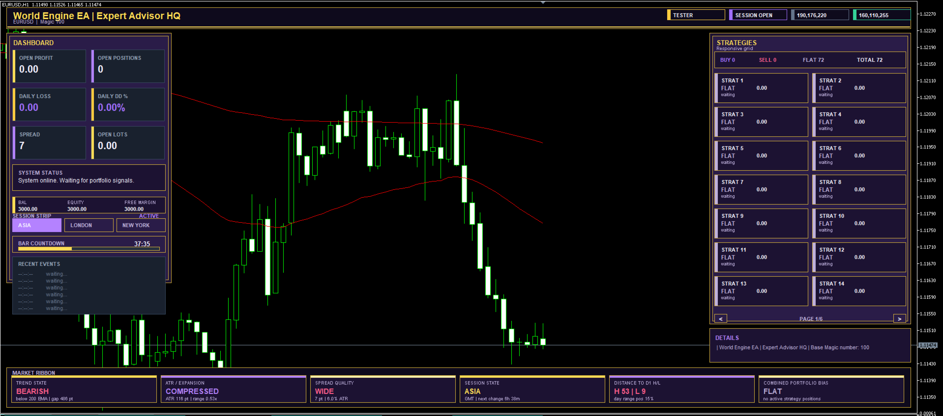 EA World Engine, MetaTrader 5 için profesyonel otomatik işlem çözümü arayan yatırımcılar için geliştirilmiştir. Özellikle EURUSD 1 saatlik grafiği için tasarlanan bu çözüm, uzun vadeli performans sağlamak için sağlam bir algoritmik temel ve optimize edilmiş işlem yapısını bir araya getirir.