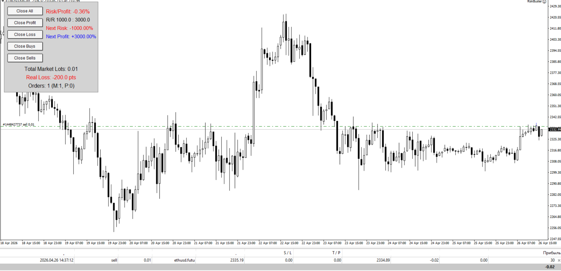Ne Yapar: Kârları kilitleyen içindeki scalper. Hesaptaki toplam kâr bu yüzdeye ulaştığında – parayı alır ve durmanı sağlar.