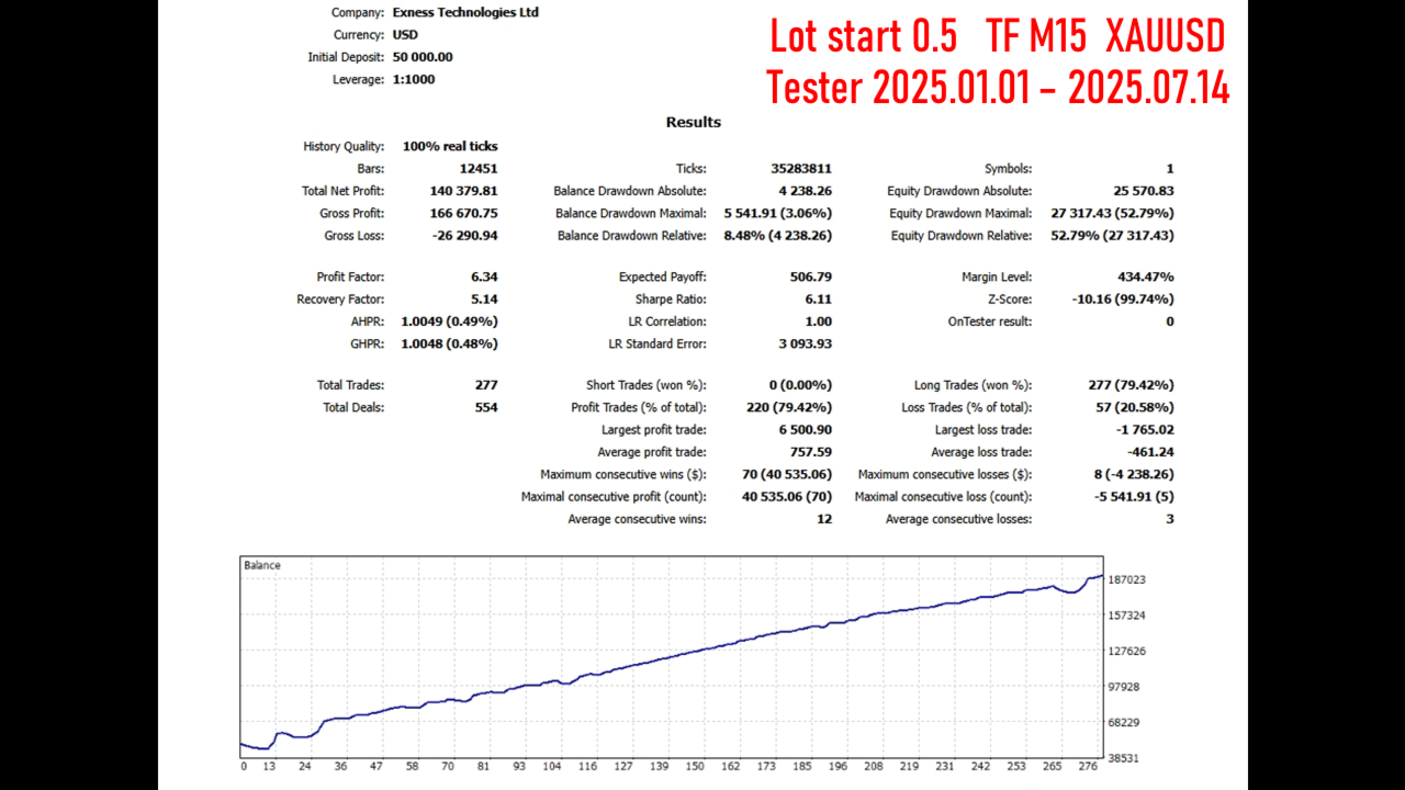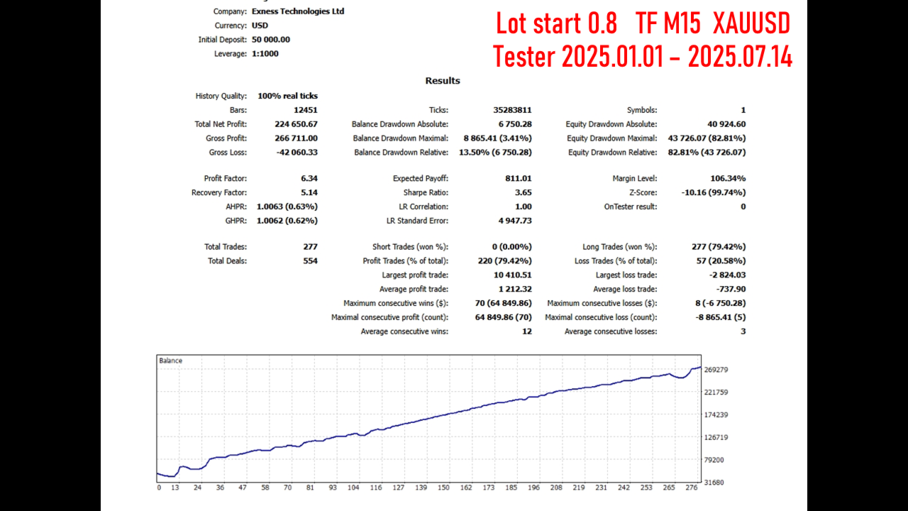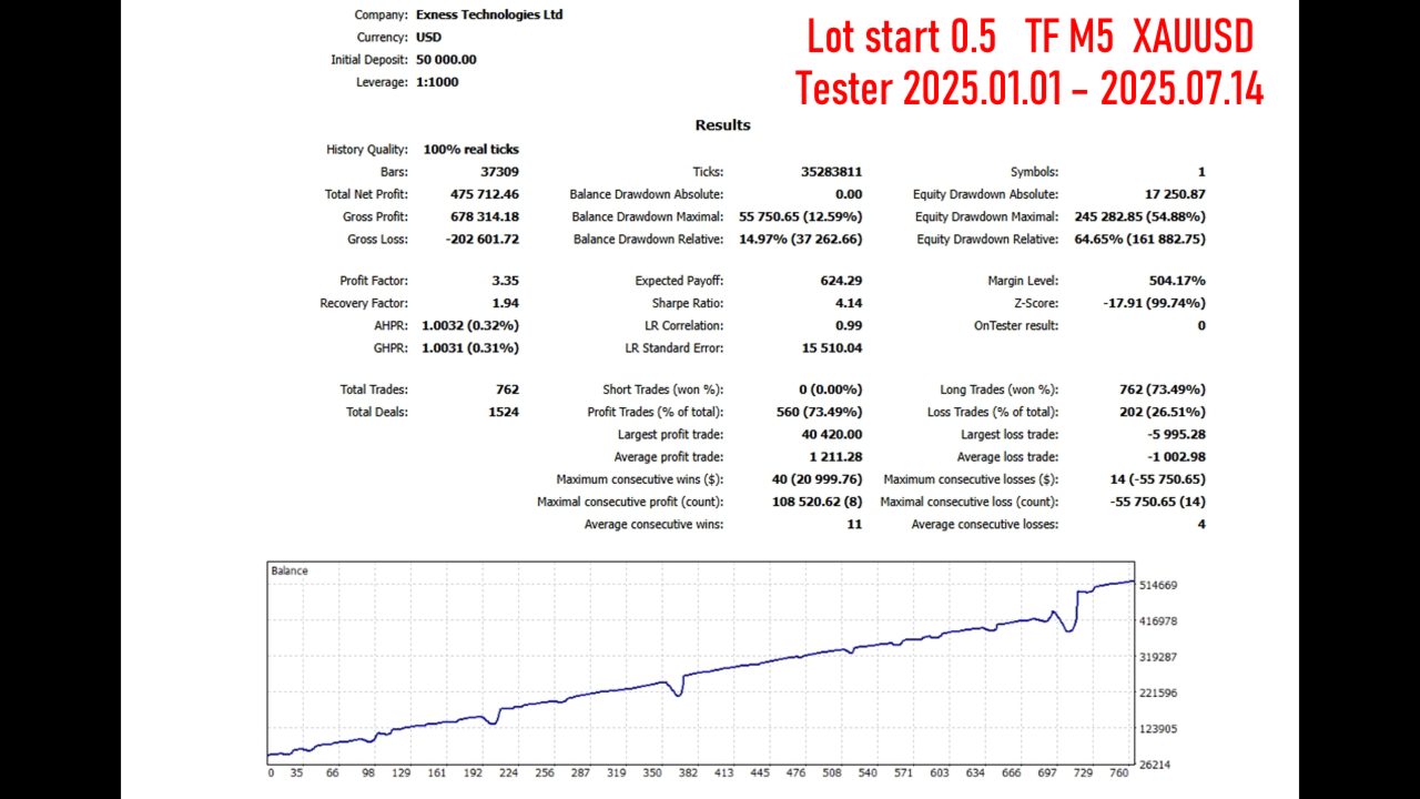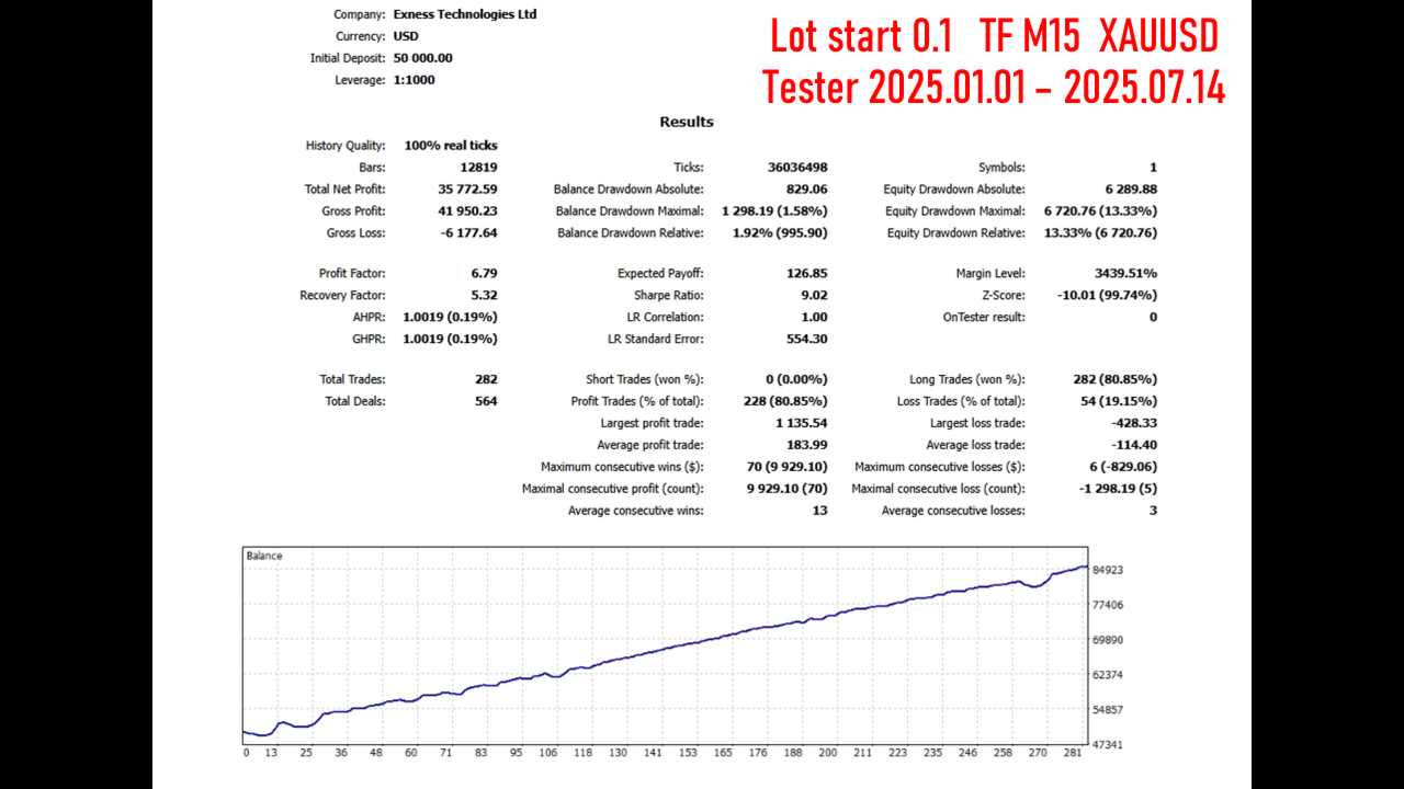 Additionally, the strategy allows for directional filtering — you can choose to trade only in one direction, such as Buy only or Sell only. For gold trading (XAUUSD), it is advisable to focus on Buy positions only due to its long-term bullish bias.