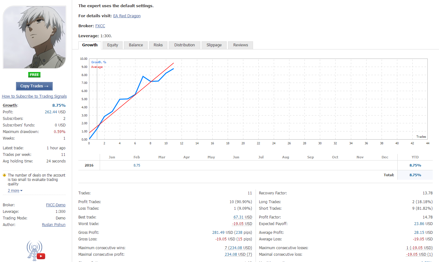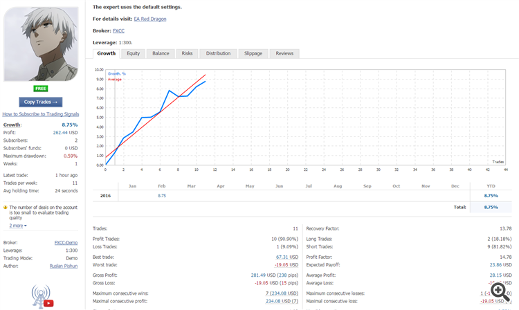А на демо счете да, работает хорошо. Вот поэтому автор и не сделал мониторинг реал счета :-)
