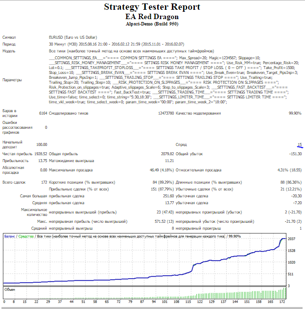 Проведено более 500 тестов на реальных и исторических данных. Советник успешно выдерживает спред до 20 пунктов.