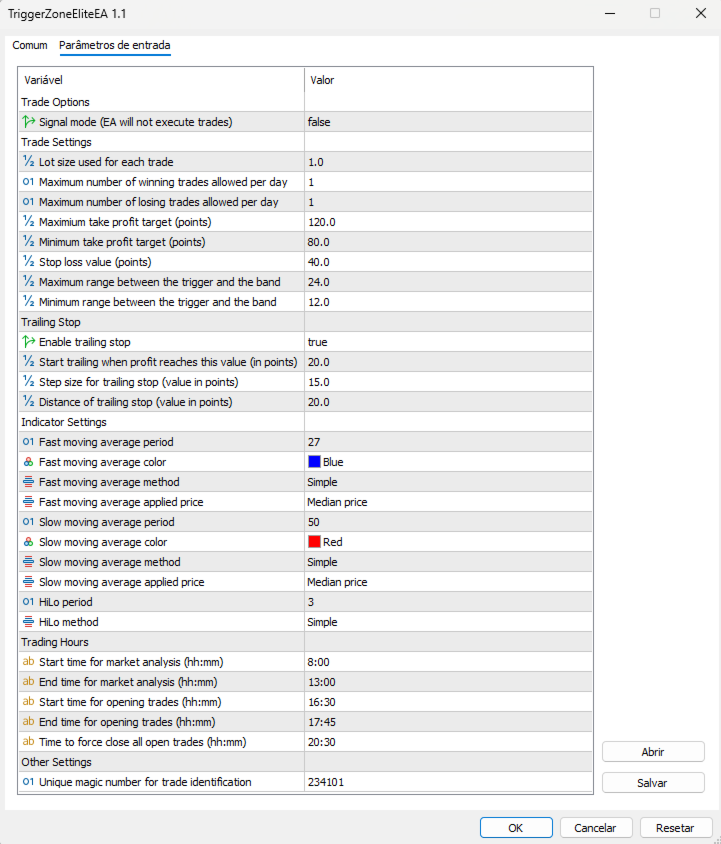 ⚙️ Giriş Parametreleri – Trigger Zone Elite EA
