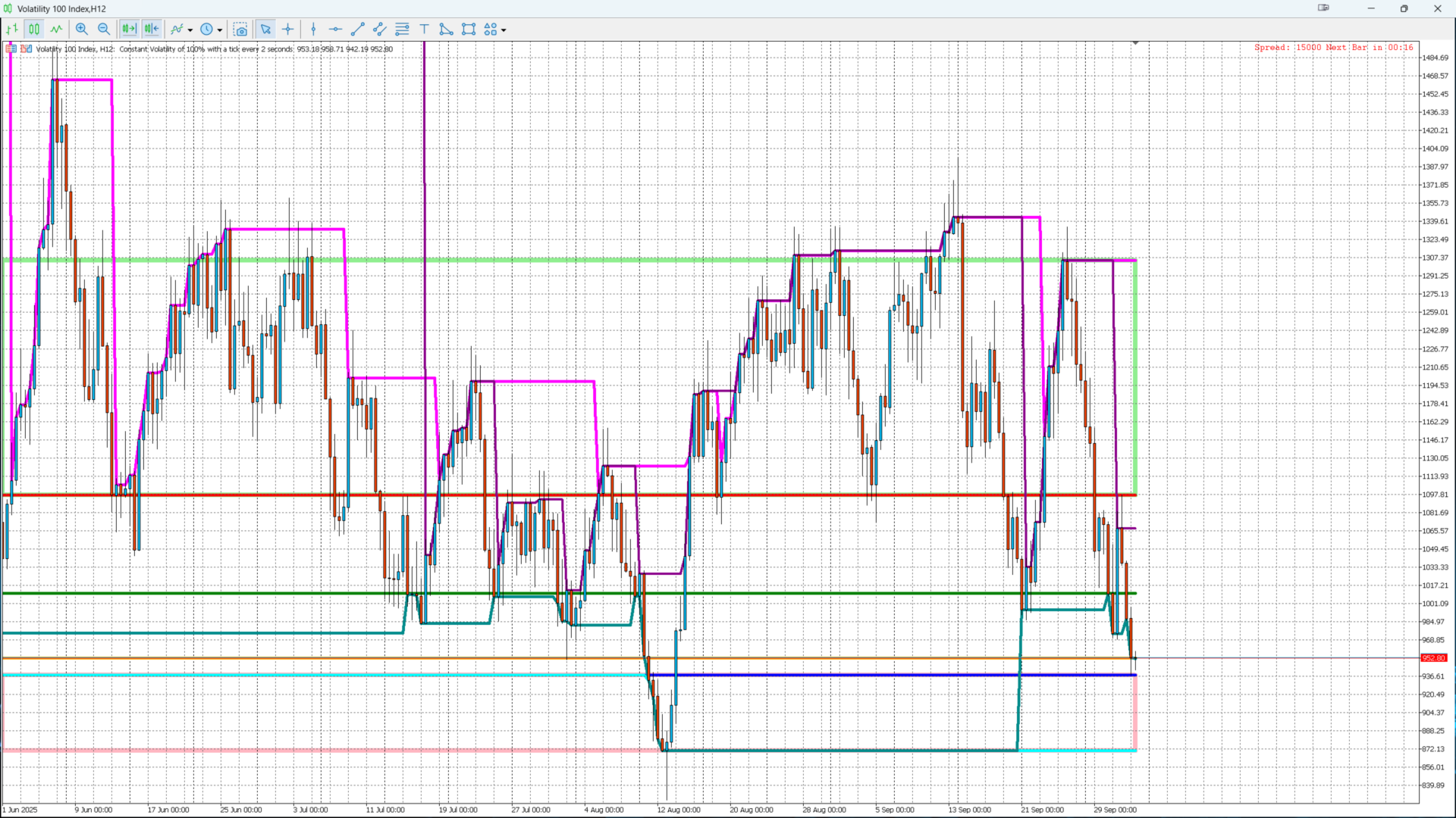 Otomatik likidite bölgeleri: potansiyel alım e satım bölgelerini dynamique renkli dikdörtgenlerle görselleştirin.