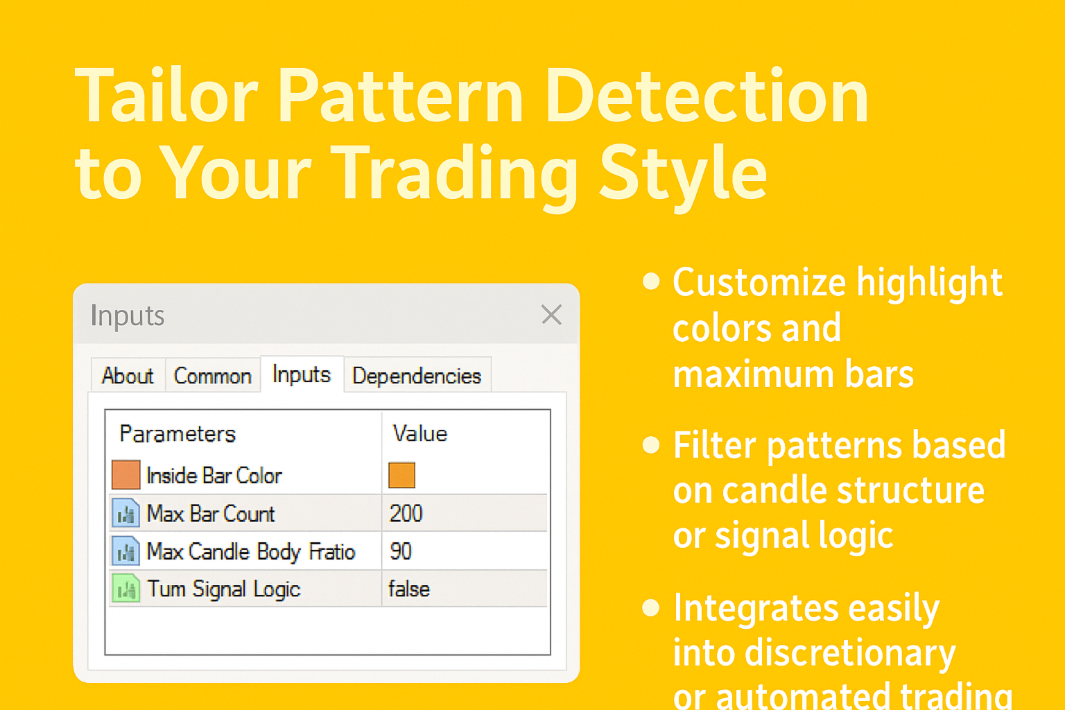 This indicator detects inside bars of several ranges, making it very easy for price action traders to spot and act on inside bar breakouts.